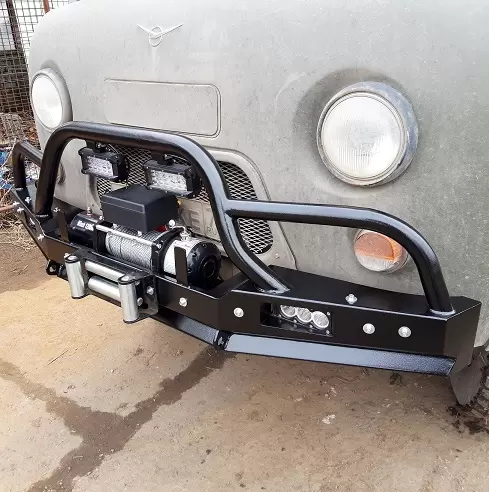 Силовой бампер - это аналог заводского пластикового обвеса, специально изготовленный из стальных труб либо листового металла.