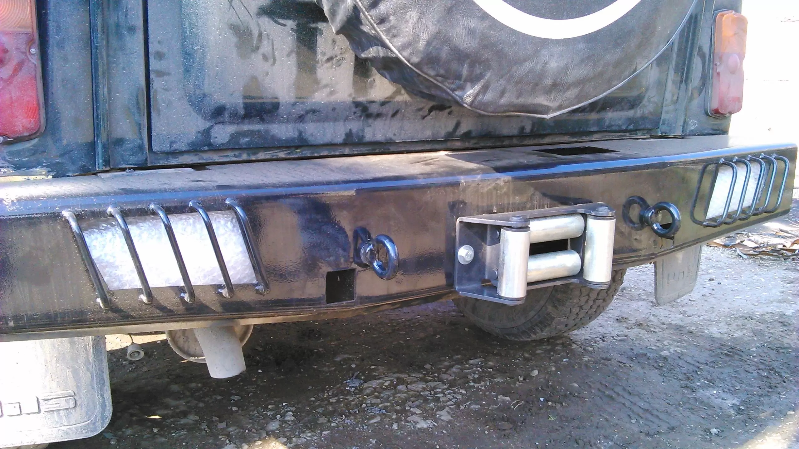 Задний силовой бампер - это аналог заводского пластикового обвеса, специально изготовленный из стальных труб либо листового металла.
