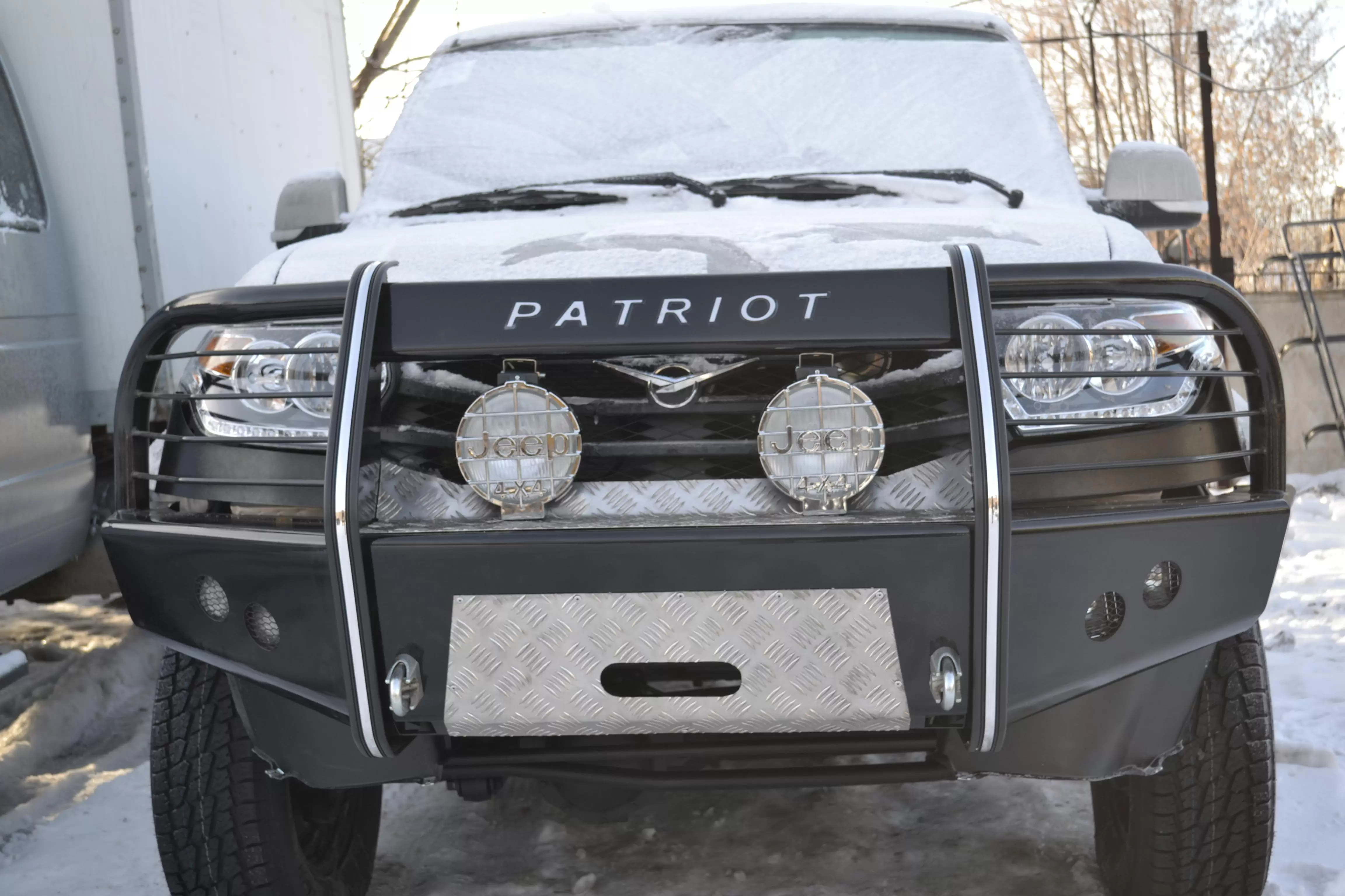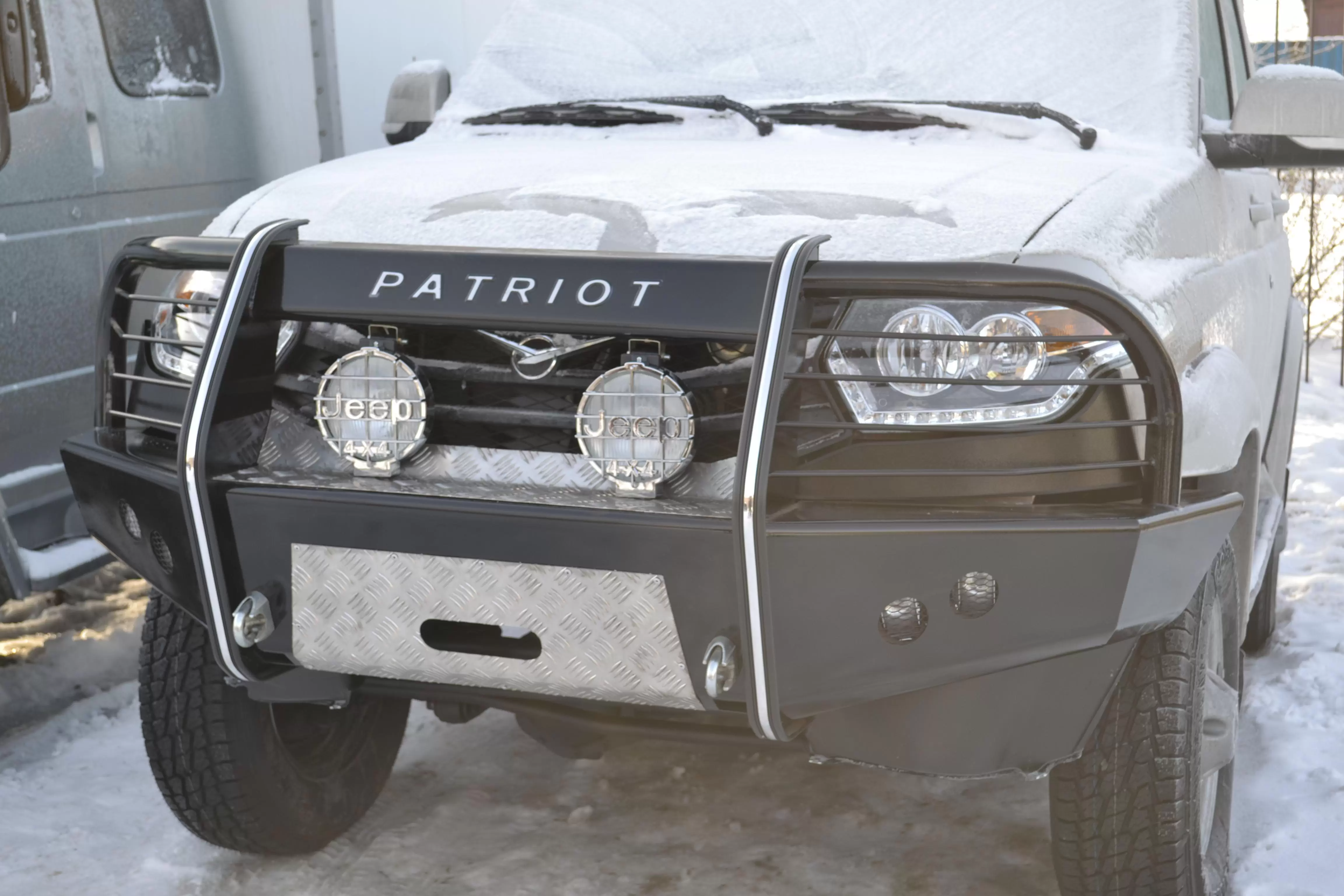 На этой странице можно купить Силовой передний бампер на УАЗ Патриот "Китобой" (с кенгурином)
