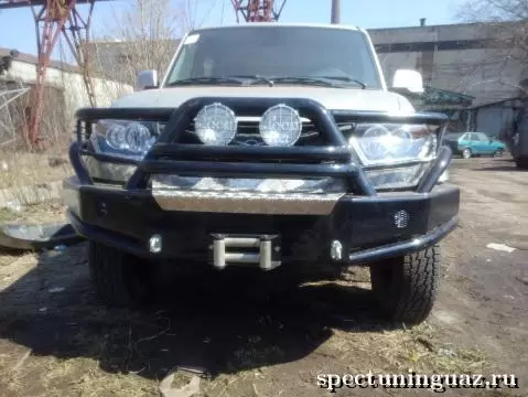 На этой странице можно купить Силовой передний бампер на УАЗ Патриот "Гладиатор" (с кенгурином)