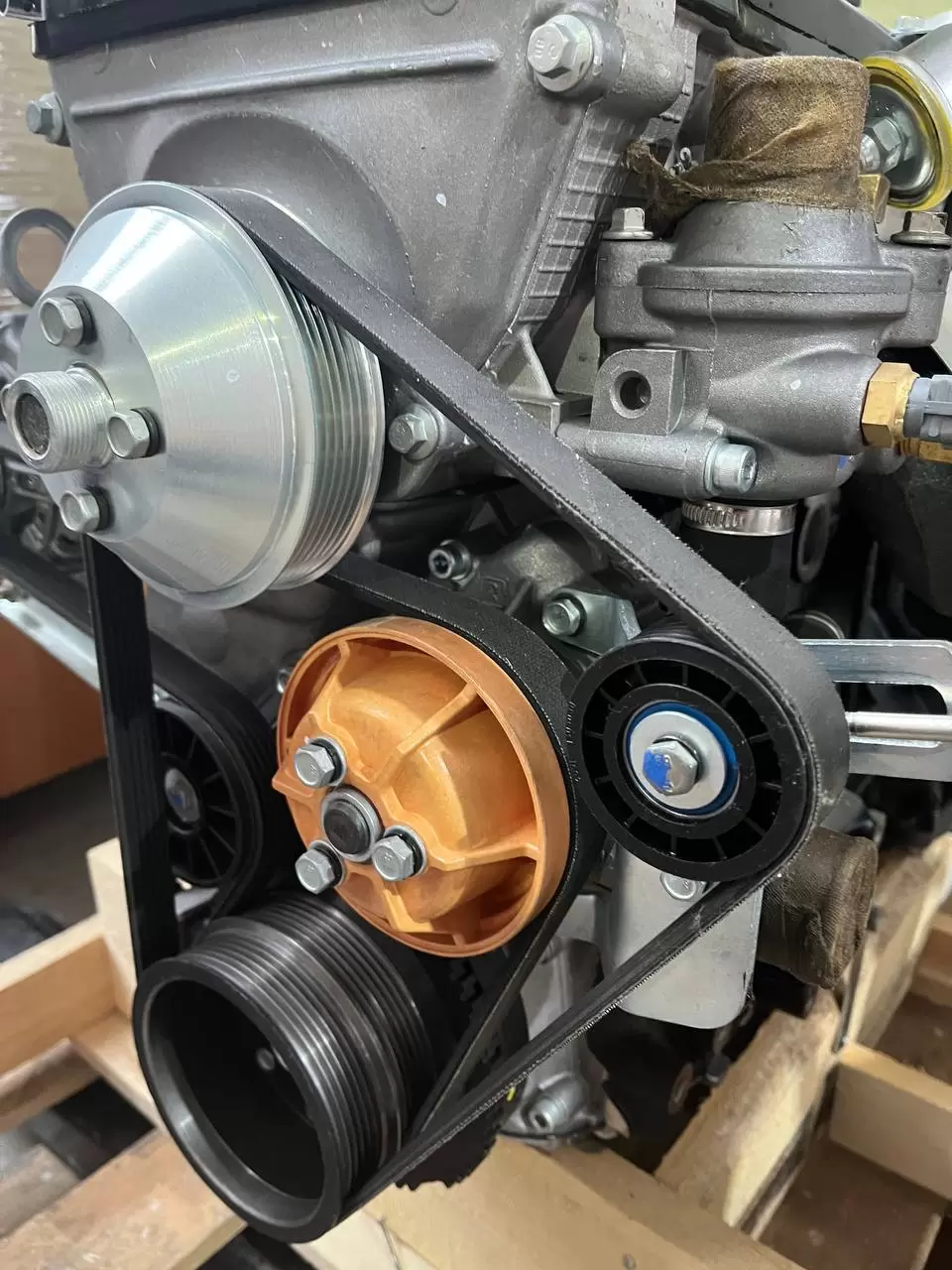 - Отличительной чертой являются две катушки зажигания, распложенные сверху на передней части клапанной крышки, шкив коленвала под два поликлиновых ремня.