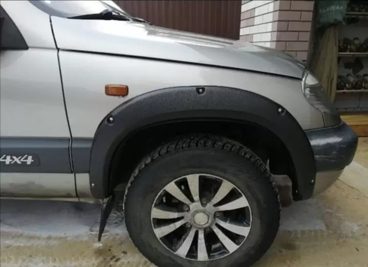 Комплект пластиковых накладок на колесные арки для Chevrolet NIVA (до рестайлинга). Позволяет маскировать повреждения и следы коррозии на крыльях автомобиля.