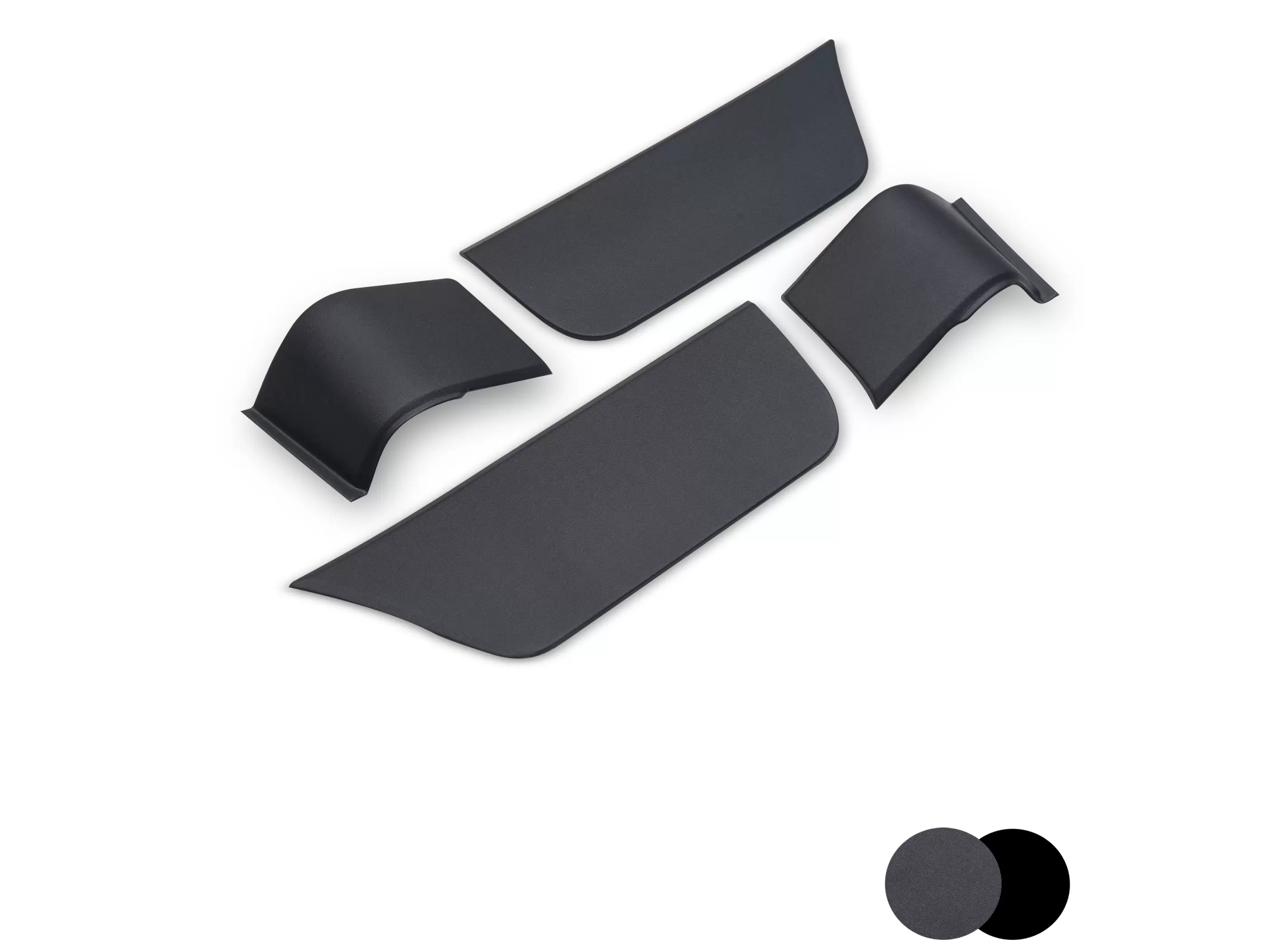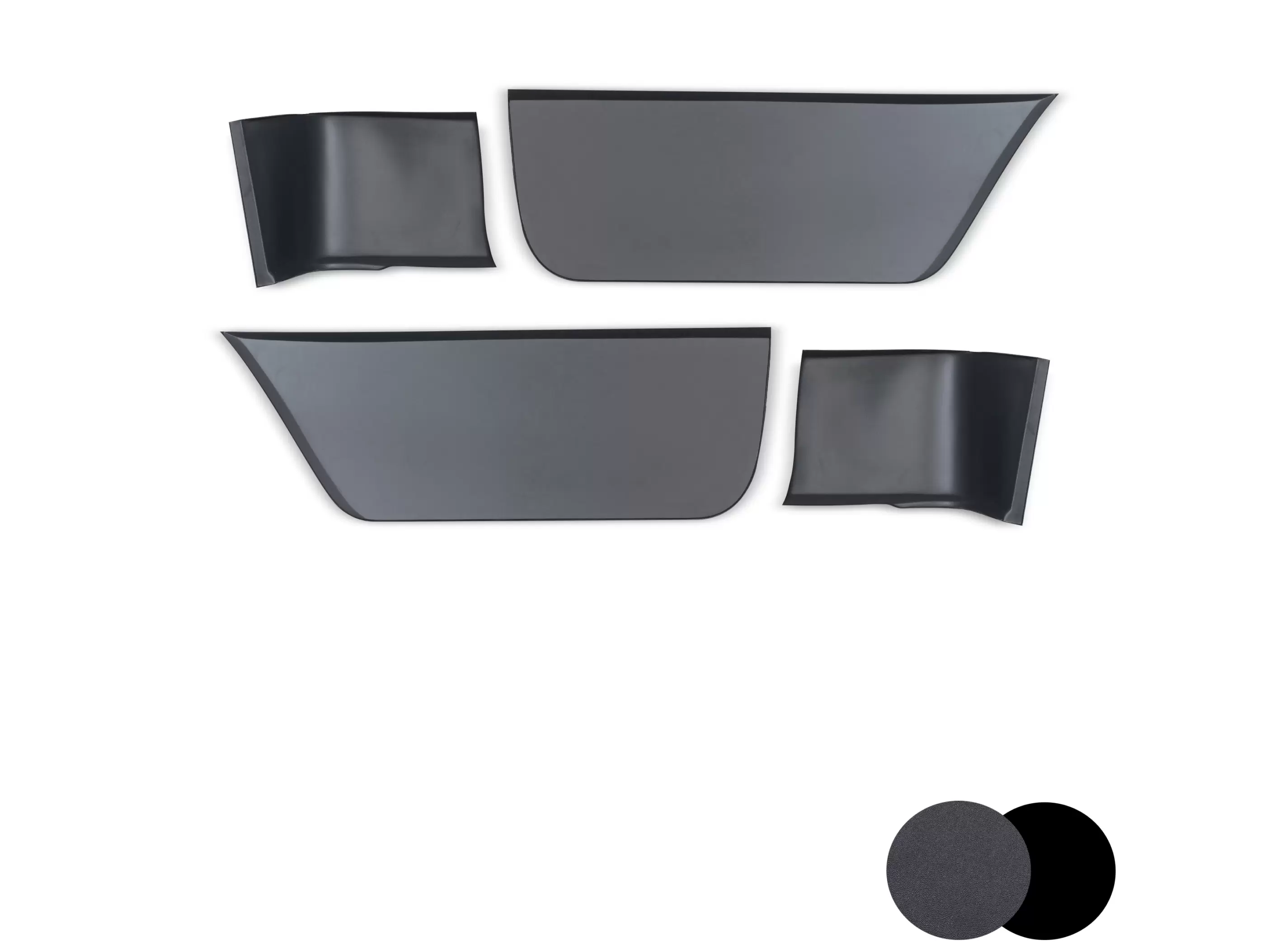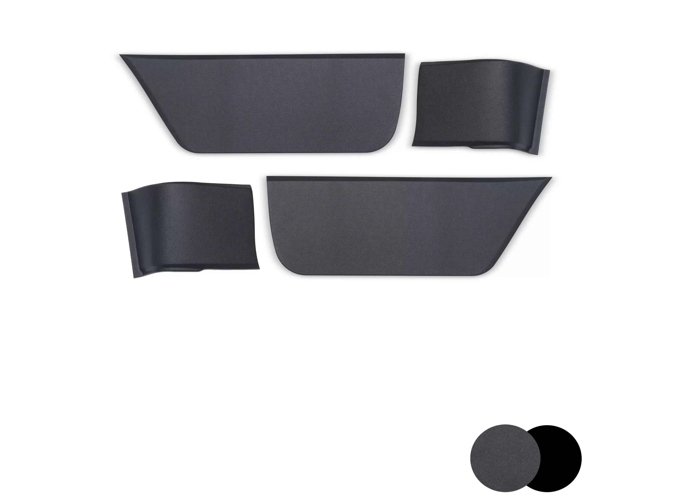Комплект пластиковых накладок на низ дверей и боковин (4 шт.). Обеспечивают защиту от повреждений, маскируют имеющиеся дефекты (вмятины и следы коррозии). Сочетаются с другими элементами внешнего обвеса.