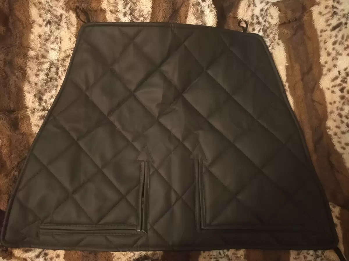 На вид качественный утеплитель. Выглядит красиво, добротно. Имеет теплую подкладку. Крепления которые идут в комплекте - обычные галантерейные резинки. Но это не проблема. Можно приобрести ластиковые хомуты и закрепить ими конструкцию более надежно. Размер утеплителя соответствует размеру отверстий решетки радиатора, однако хотелось бы чтобы он был немного побольше, чтобы ложился на бампер с запасом. Но это скорее мои придирки.