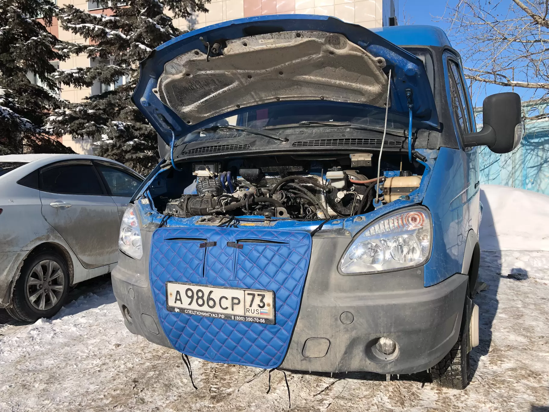 Утепление радиатора ускоряет выход двигателя на рабочий тепловой режим и способствует его поддержанию в сильные морозы, что положительно сказывается на расходе топлива и работе штатной печки. Более эффективное мероприятие – установить утеплитель радиатора на Газель Бизнес. Отсутствие обдува холодным воздухом деталей силовой установки способствует ускорению прогрева на ходу.