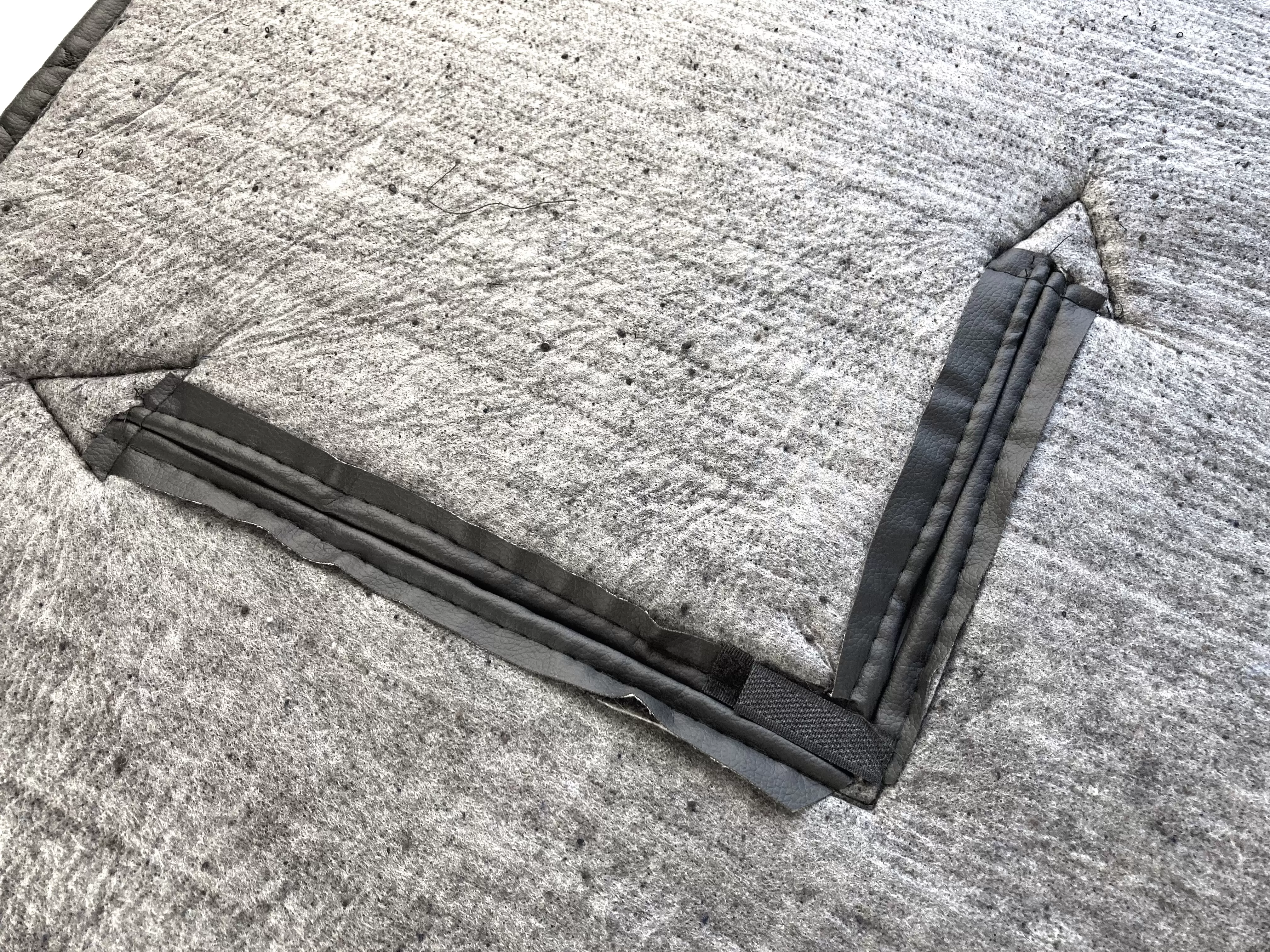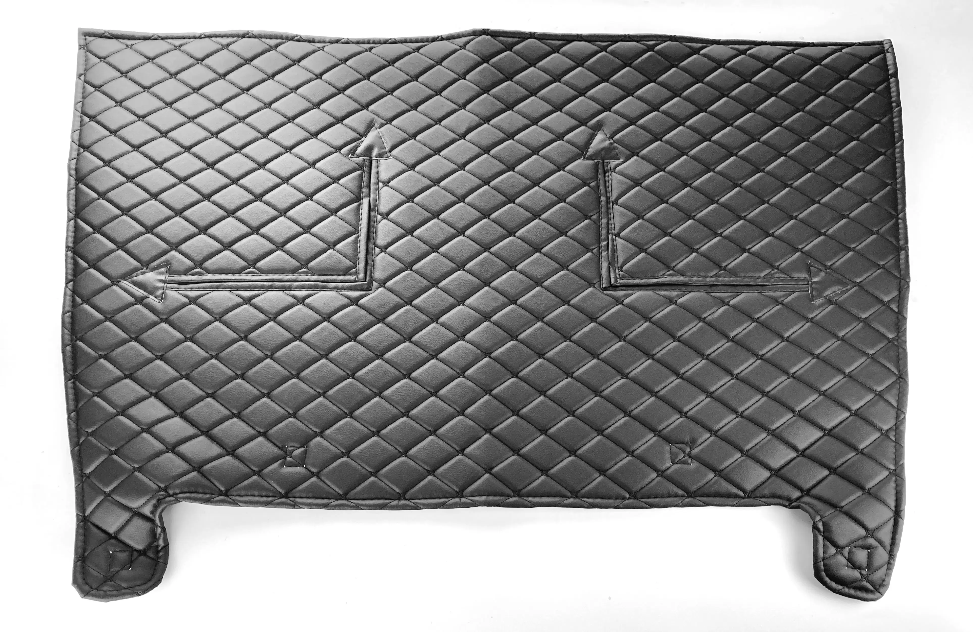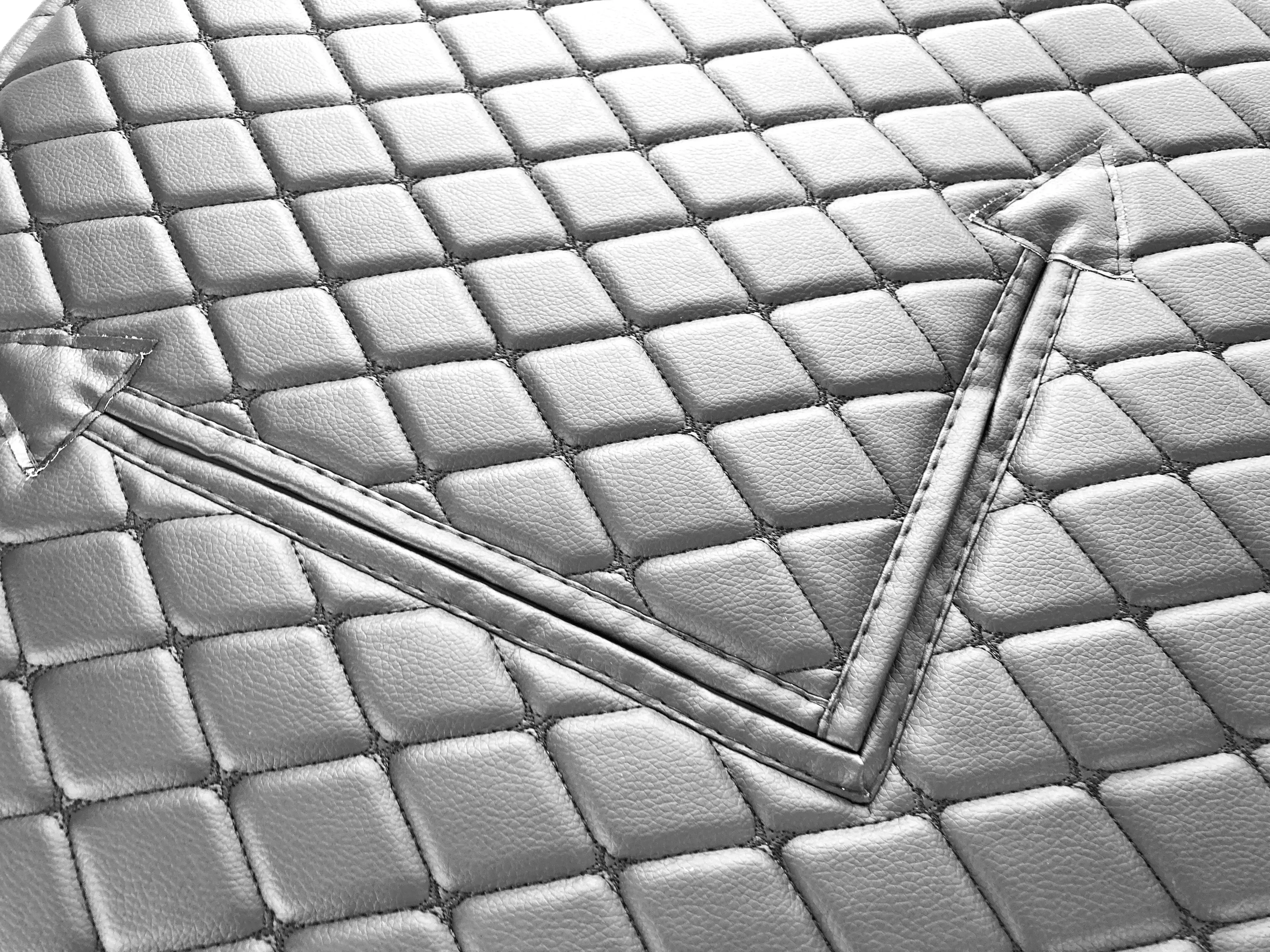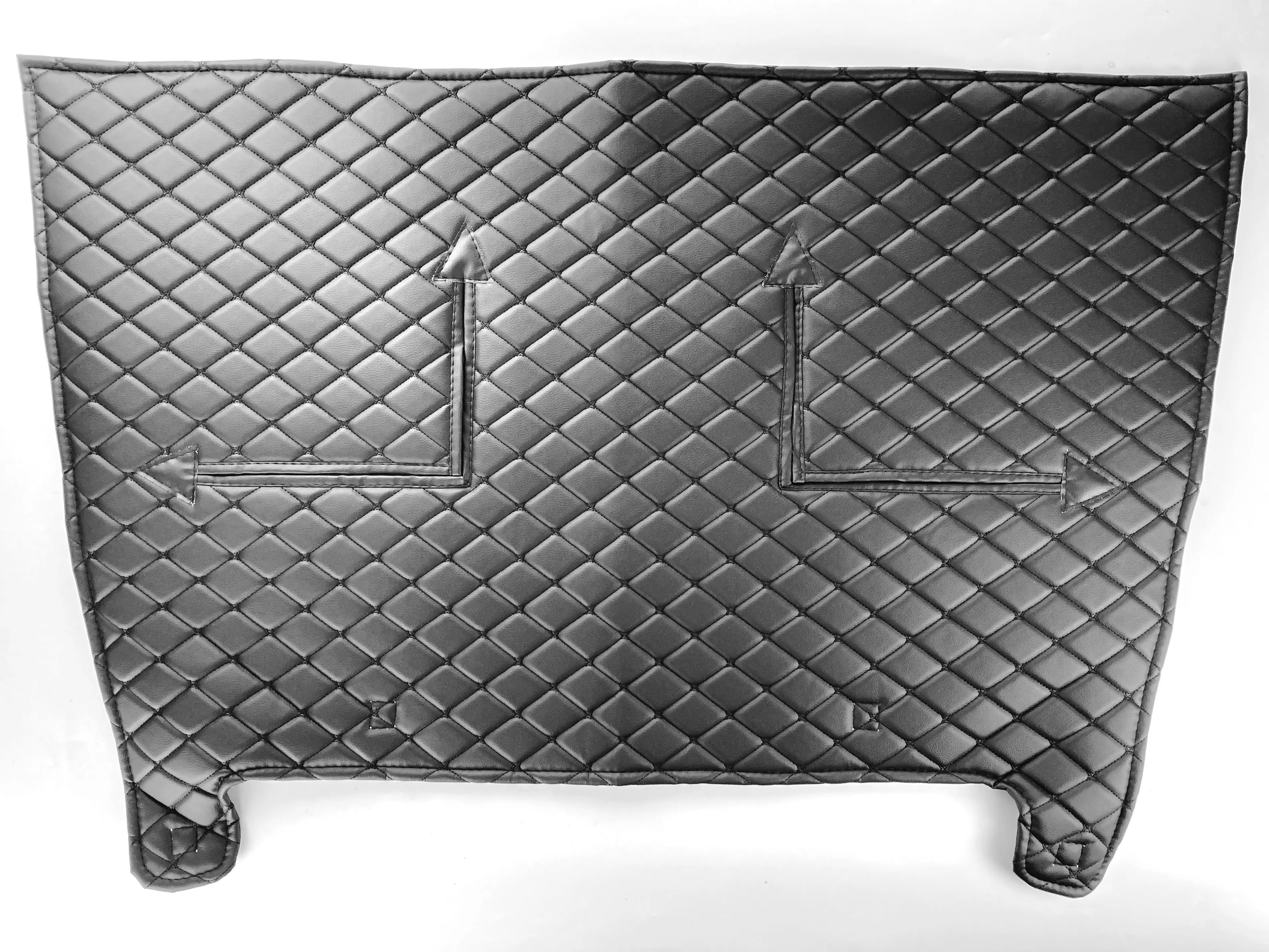 Изделие выполнено из винилискожи с декоративной прострочкой «чёрный ромб», внутри используется утеплитель (ватин). Материалы устойчивы к влаге, дорожной грязи и перепадам температур. Утеплитель плотно перекрывает поток холодного воздуха, помогая поддерживать рабочую температуру двигателя при движении.