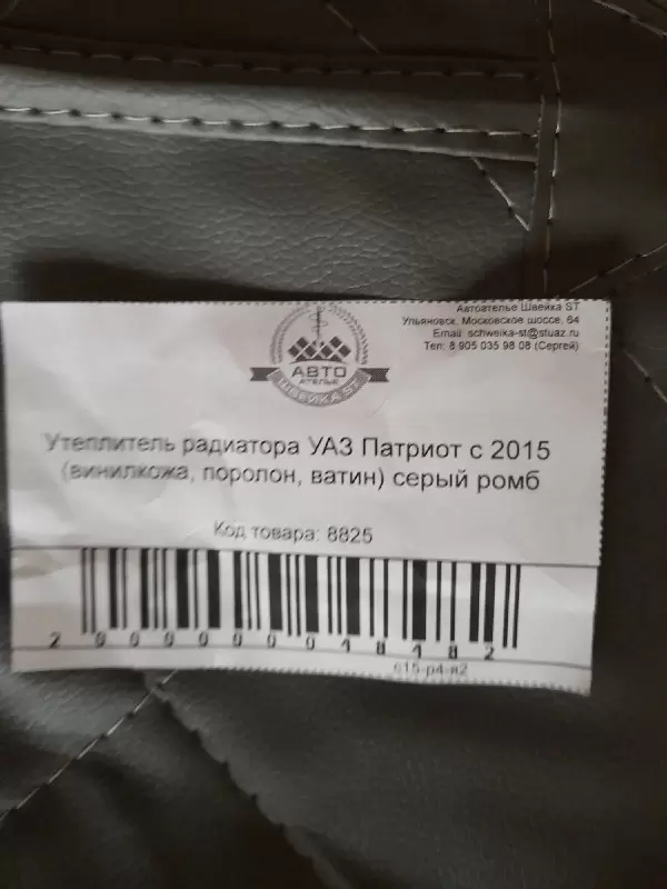 Утеплитель радиатора УАЗ Патриот с 2015 (в/кожа, поролон, ватин) серый ромб