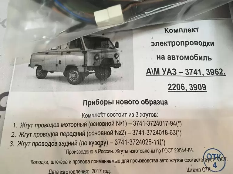 Электропроводка УАЗ 452, 3741, 3962 нового образца полная (3 жгута)