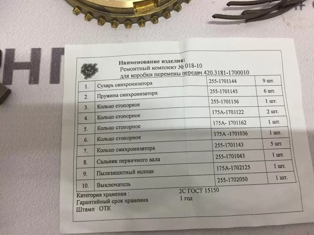 17 – 1-ые две цифры, входящий в 7-мизначный номер, являются обозначением номера группы, в данном случае “Коробки передач”