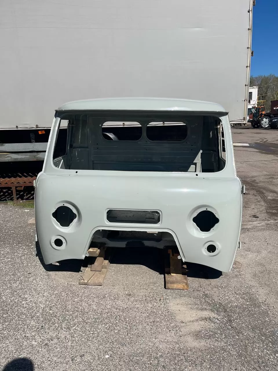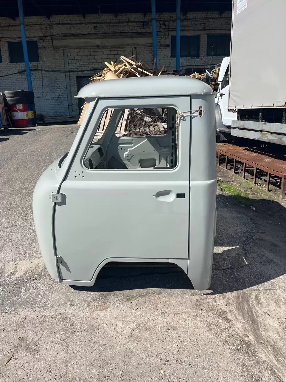 В состав комплектности входит окрашенный каркас кабины УАЗ с навешенными дверьми на петлях и полами.