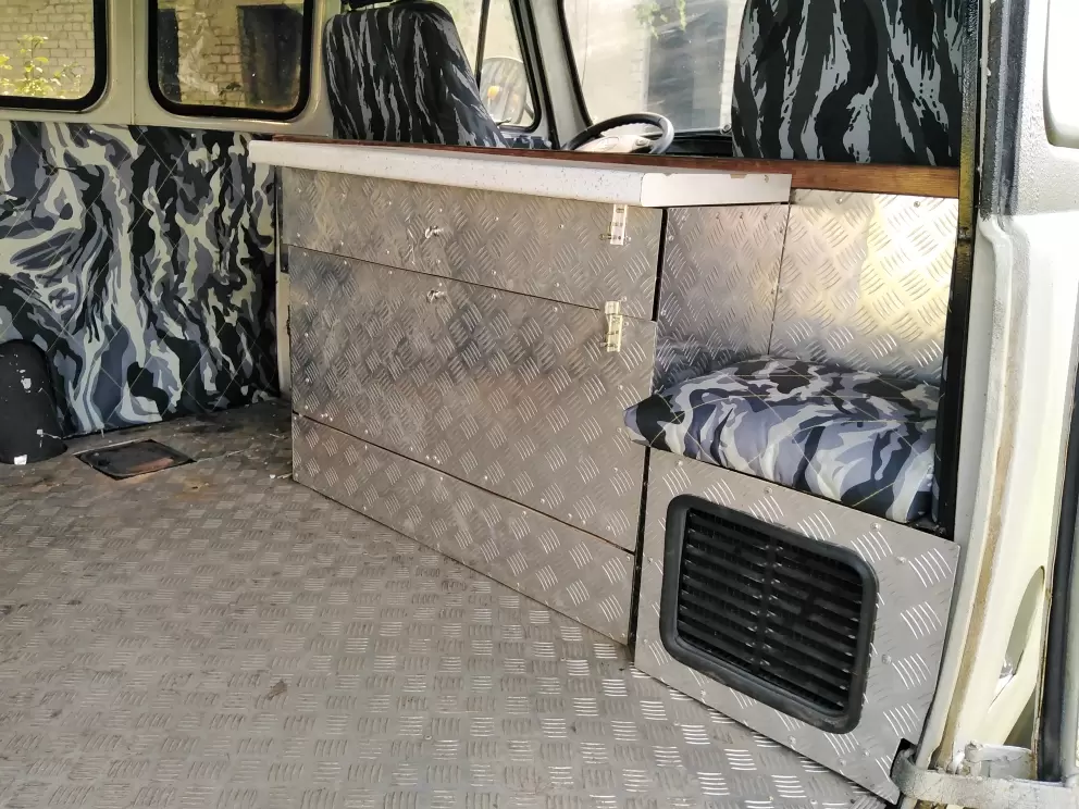 Стол-тумба в алюминиевой обшивке УАЗ 452, Буханка (с ящиками)