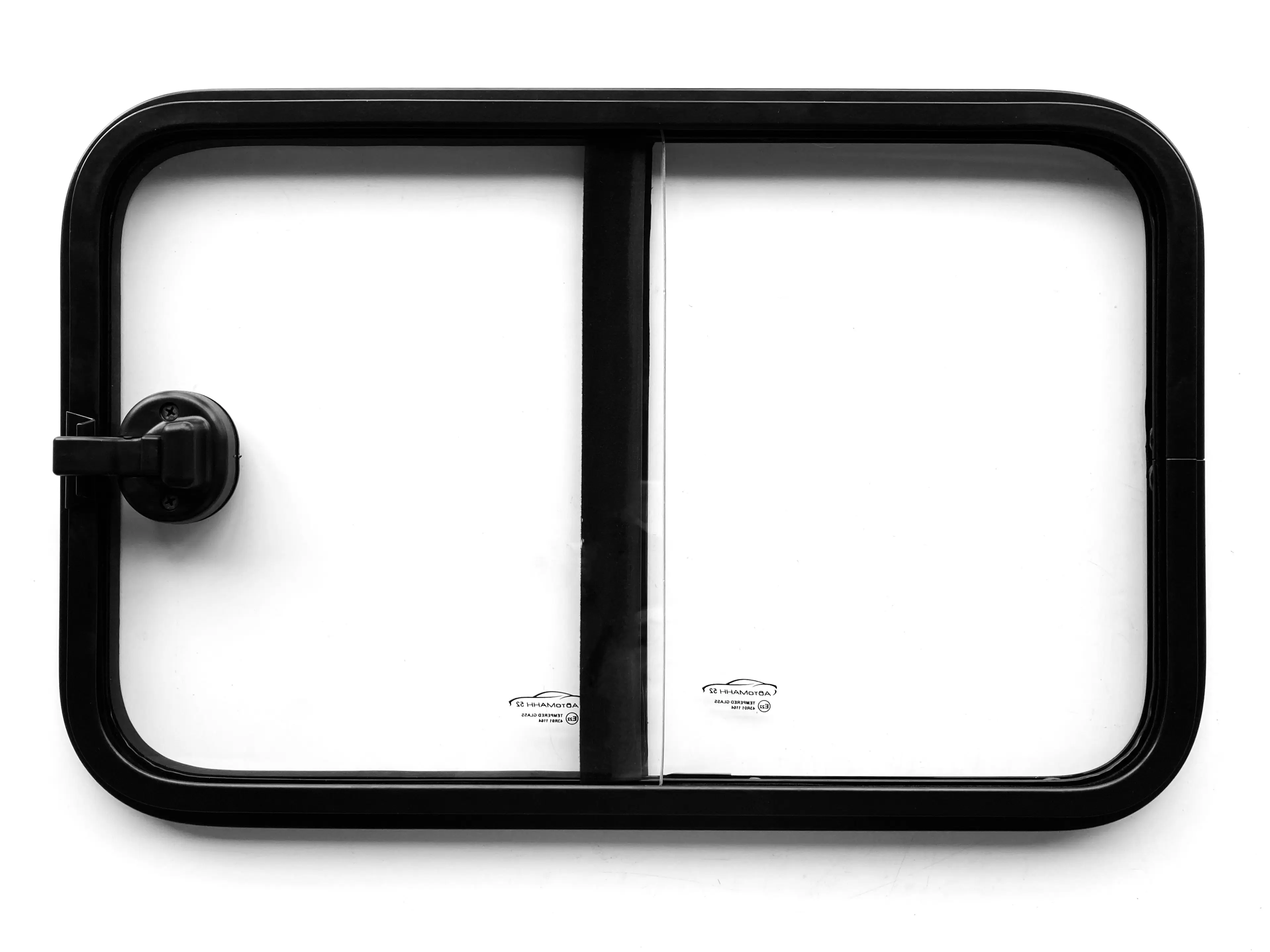 Окно изготовлено из закаленного стекла, сама конструкция раздвижная и снабжена фиксирующим замком.