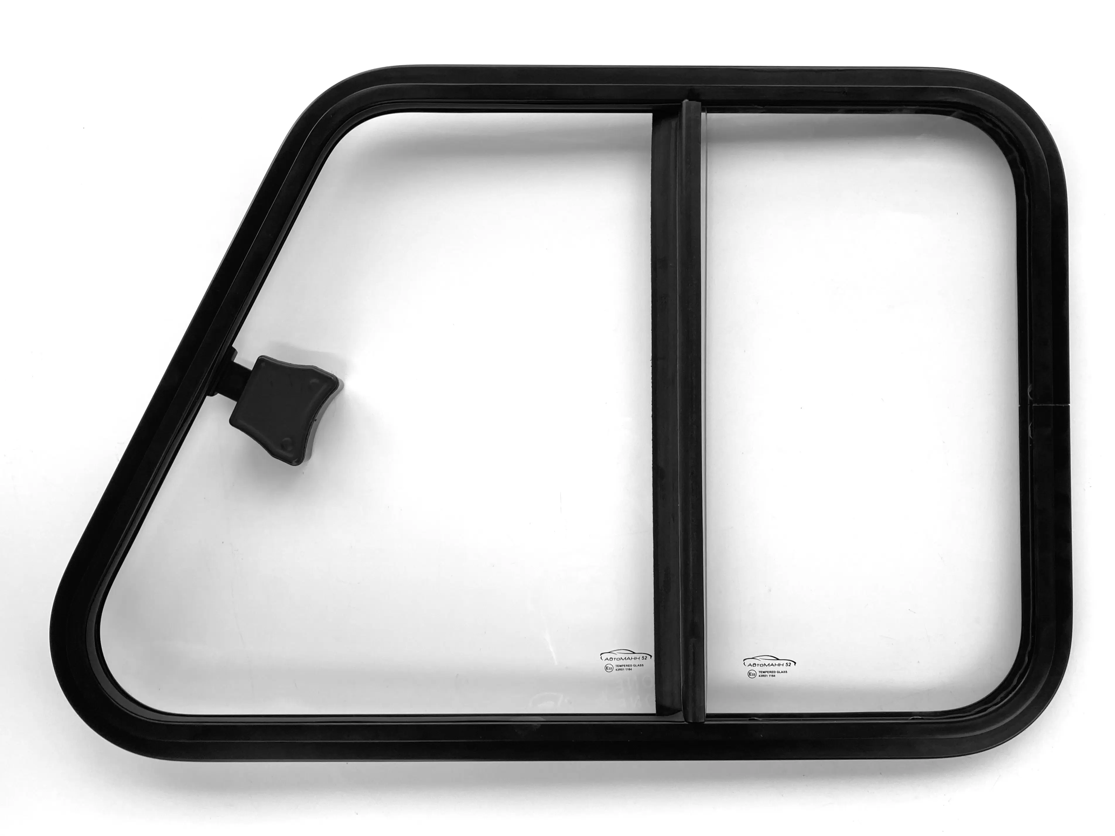 Монтируются на автостекольный клей или заклепки. Так же как и буханочные кабинные, данные раздвижные конструкции увеличивают жесткость дверей. Устраняют течи воды по окнам и поддувания в салон.