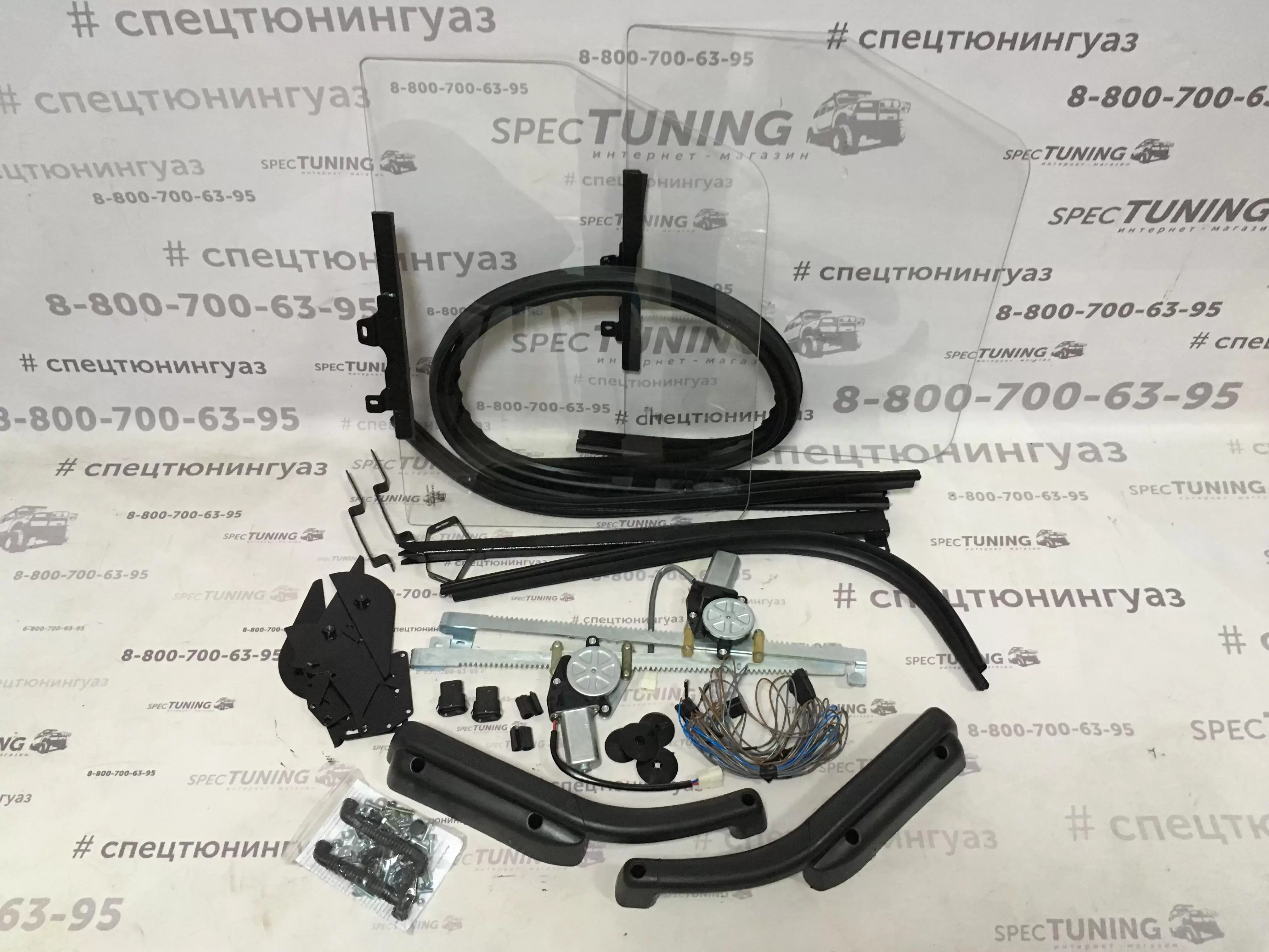 Анализируя опыт множества уазоводов самостоятельно делавших данную доработку, инженерами компании Autogur73 был разработан установочный комплект, состоящей из стекол, электростеклоподъемников, уплотнителей, кронштейнов и крепежа. Основной задачей было исключить проблемы, с которыми сталкивались при внедрении данного девайса, а также сделать установку максимально простой. На установку данного комплекта, при наличии всего необходимого инструмента, потребуется всего 4 часа.