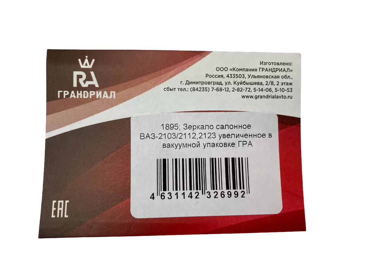 Зеркало салонное ВАЗ 2103 / 2112, 2123 увеличенное в вакуумной упаковке