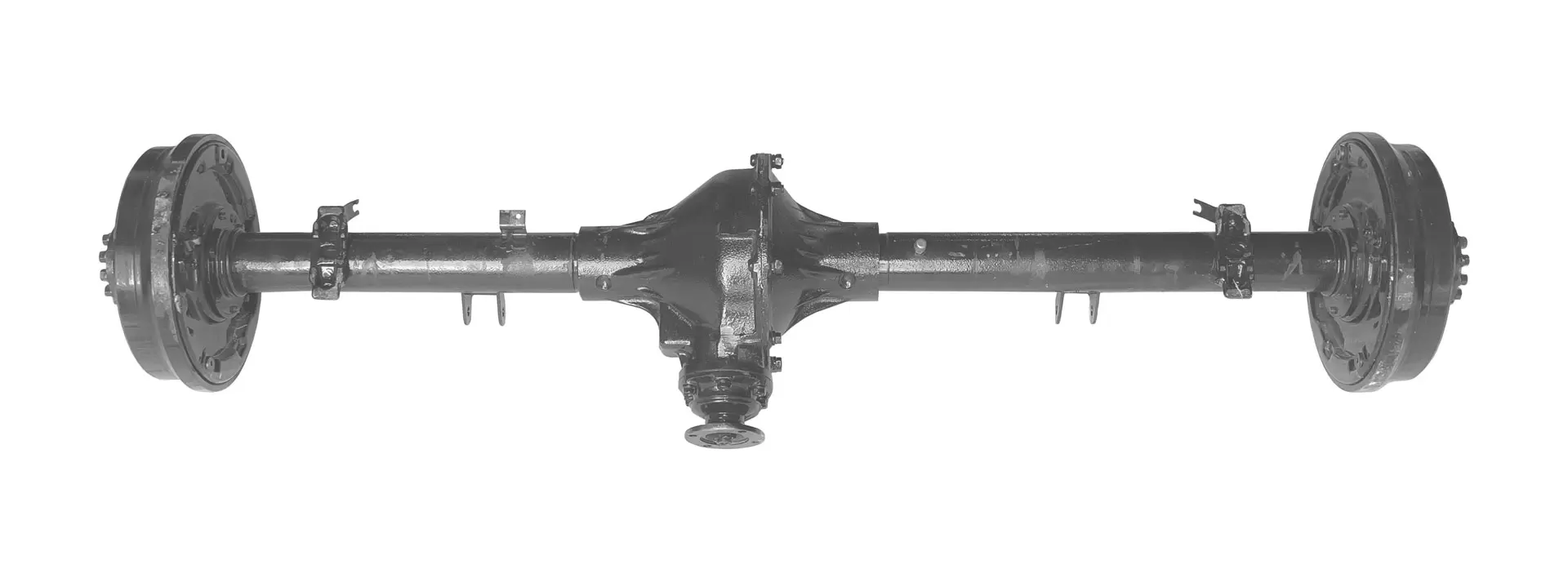 Задний ведущий мост УАЗ системы "Тимкен" (Американская Компания Колёсных Роликоподшипников Тимкен) с барабанными тормозами предназначен для передачи тягового усилия на колеса. Служит для передачи, изменения и распределения крутящего момента от двигателя на колеса машины для увеличения проходимости. Задний мост "Тимкен", разрезной с одноступенчатой передачей. Этот мост старого образца еще называют «колхозным» или «гражданским».