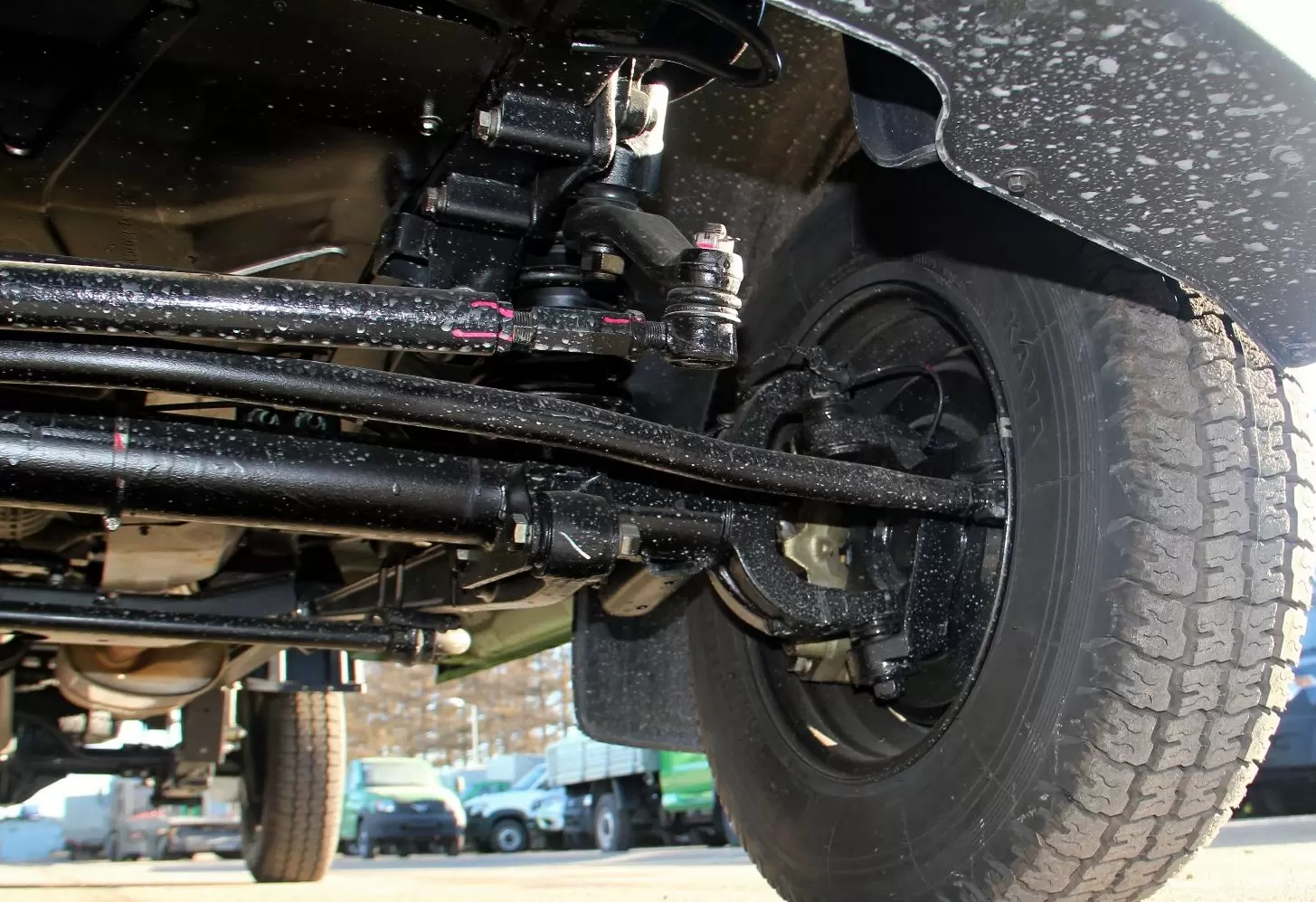 Для УАЗ ПРОФИ были разработаны новые передние мосты с поворотными кулаками выполненными не в виде шара, а в виде вилки. Причем передний мост существует в двух выриантах: для 4х4 и для 4х2. Данный мост в исполнении 4х2.