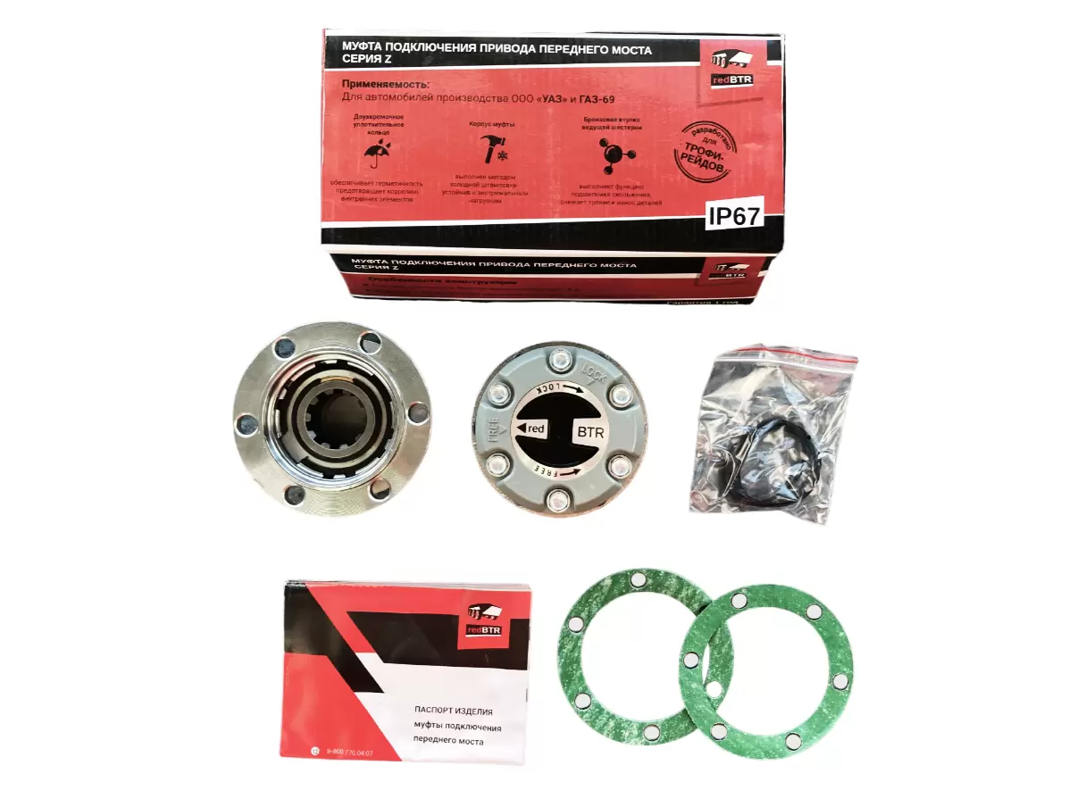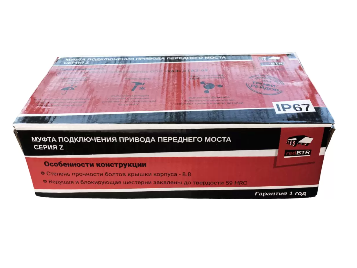 Корпус муфты redBTR УАЗ серии Z выполнен методом холодной штамповки, без предварительного нагрева заготовки. Для металлов и сплавов такая обработка давлением соответствует условиям холодной пластической деформации, сопровождающейся изменением физико-механических свойств. Это позволило redBTR произвести колесную муфту с наилучшими эксплуатационными показателями (повышенная прочность, высокая твердость и износостойкость) при относительно низкой массе детали.
