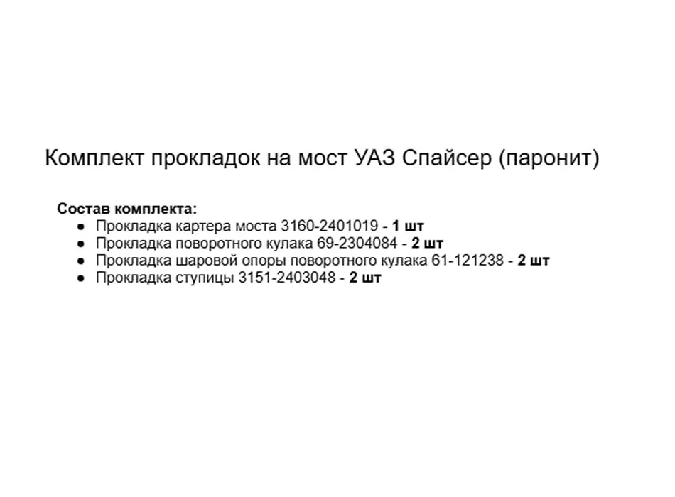 Комплект прокладок УАЗ на передний мост Спайсер (паронит)