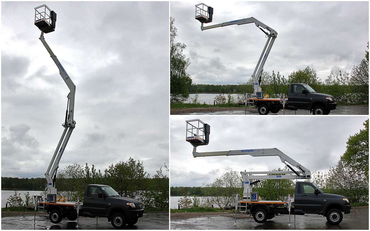 Ульяновская компания представила новый рычажно-гидравлический подъемник на базе УАЗ Профи для коммунальных служб. В прошлом году была показана модификация с двухрядной кабиной, теперь появился двухместный вариант. Автомобиль создан для транспортировки и подъема ремонтной бригады с инструментом на высоту до 14,2 метра при выполнении строительных и электромонтажных работ.