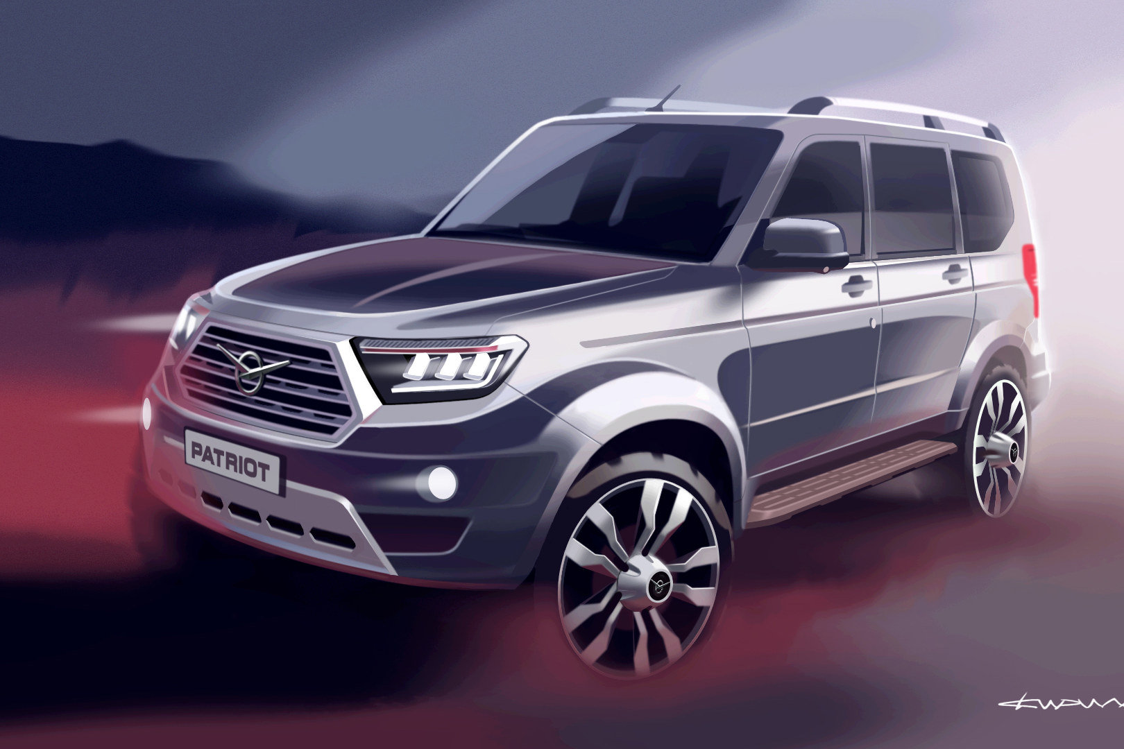 Представители журналистской среды дали перспективной модели модернизированного Патриота название «Русский Прадо». За это следует благодарить Вадима Швецова, руководящего холдингом Sollers, в состав которого входит Ульяновский автомобильный завод. Автомобиль укомплектован совершенно новой рамой, более продуманной и прочной, если иметь в виду обеспечение пассивной безопасности. У этой модели несколько особенностей: от более широких ланжеронов до расположенного впереди деформируемого модуля.