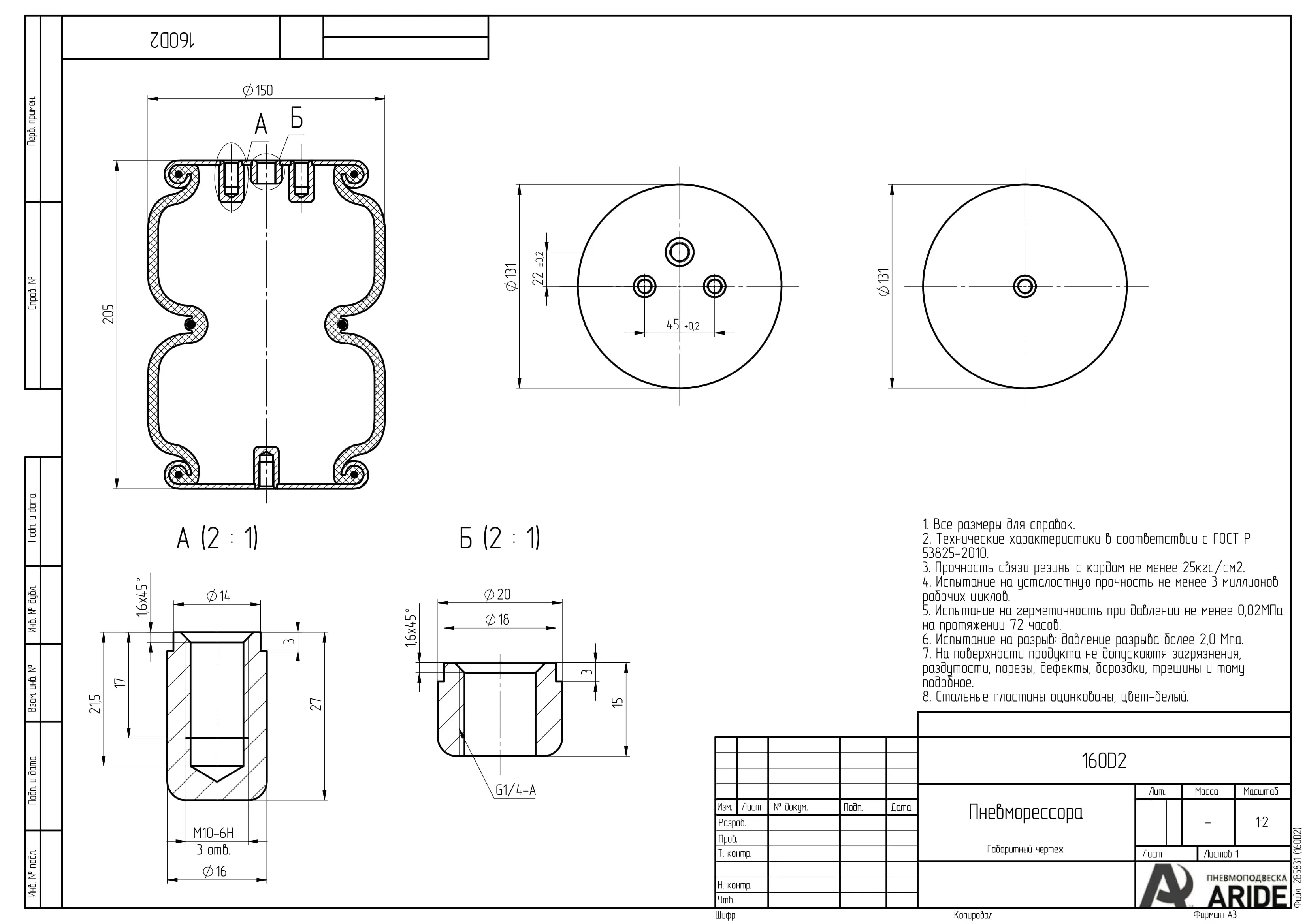 Пневмоподушка 160D2 (сильфон двойной закрытый) купить в Москве и Санкт-Петербурге в интернет-магазине «Aride»: ✓комплектующие от мировых производителей ✓гарантия лучшей цены ✓доставка по РФ ✓собственное производство