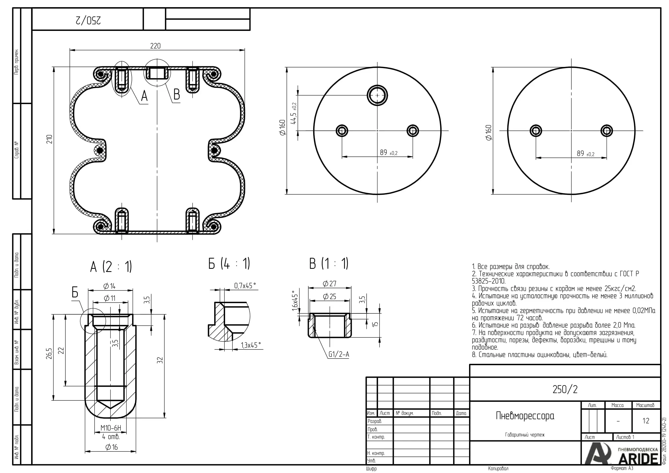 Характеристики - Пневмоподушка 250/2 (сильфон двойной закрытый)