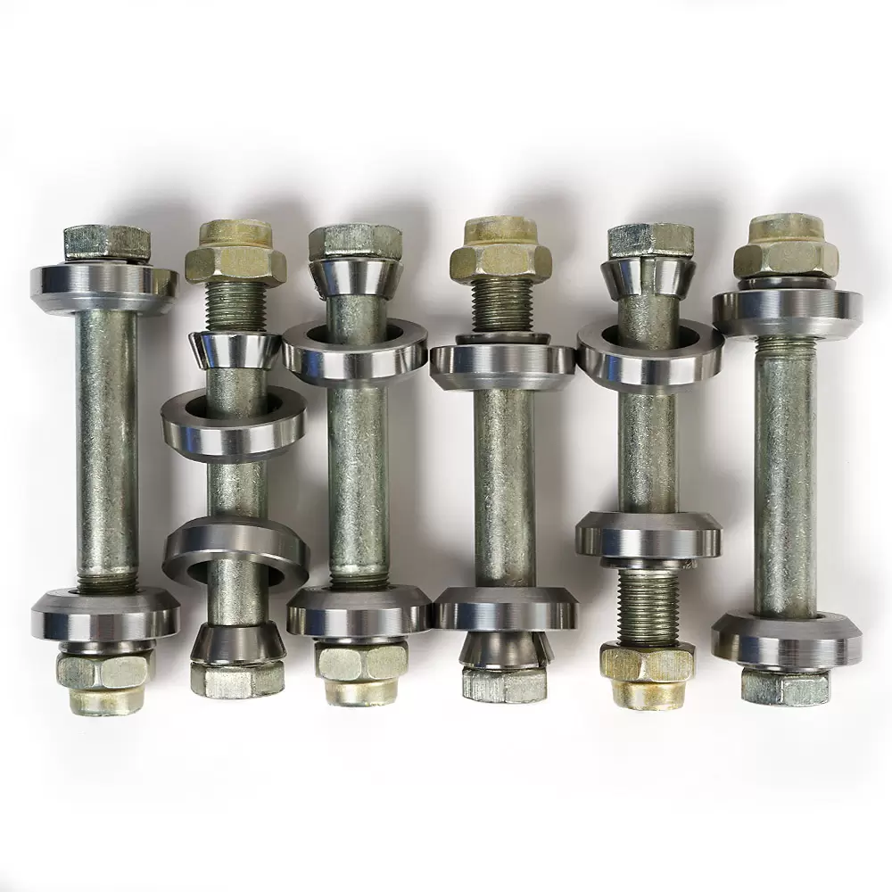 Данное изделие служит для усиления кронштейнов продольной и поперечной тяг УАЗовских мостов с пружинной подвеской. Особенно полезен в случае эксцентриситета (овальности) отверстий в кронштейнах. Комплект на Патриот 6 штук, на Хантер - 5 штук. Установка: Установить автомобиль на ровную площадку. Отвернуть штатный болт крепления сайлентблока и взамен установить из комплекта, затянуть гайку с усилием 15 кгс*м. Прихватить полуавтоматом большую шайбу к кронштейну в нескольких точках, сплошной шов накладывать не рекомендуется