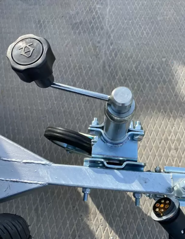 Поворотный хомут опорного колеса позволяет транспортировать прицеп не снимая колесо. С помощью поворотного механизма колесо становится в горизонтальное положение, вдоль дышла.Теперь не нужно каждый раз снимать и надевать опорное колесо на прицеп.