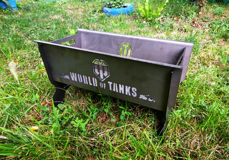 Мангал World of Tanks разборный из 5 частей (2 ножки, 2 боковины, дно) изготовлен из 3-мм стали, при помощи лазерной резки.