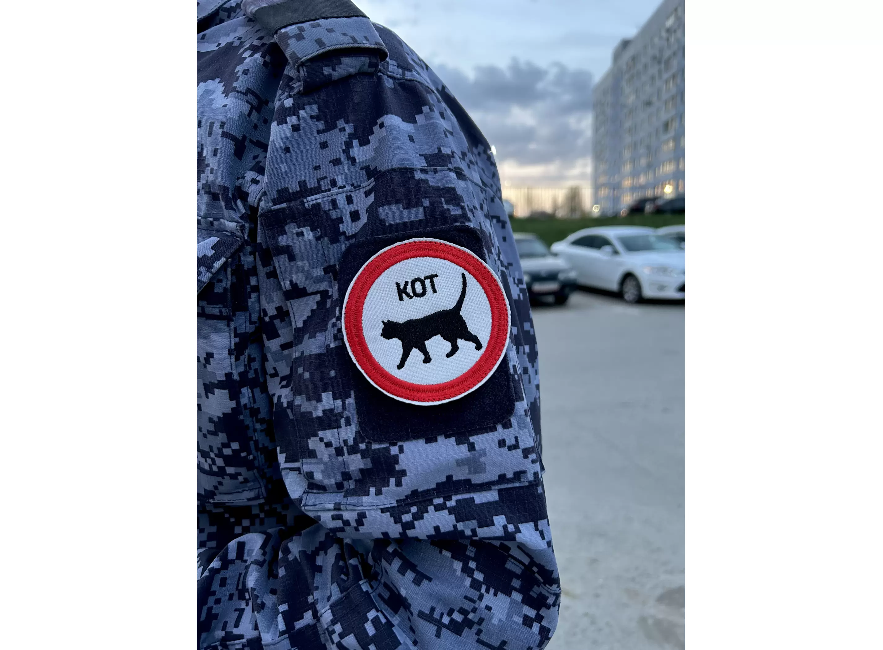 Шеврон Кот, белый фон, нашивка на липучке, патч