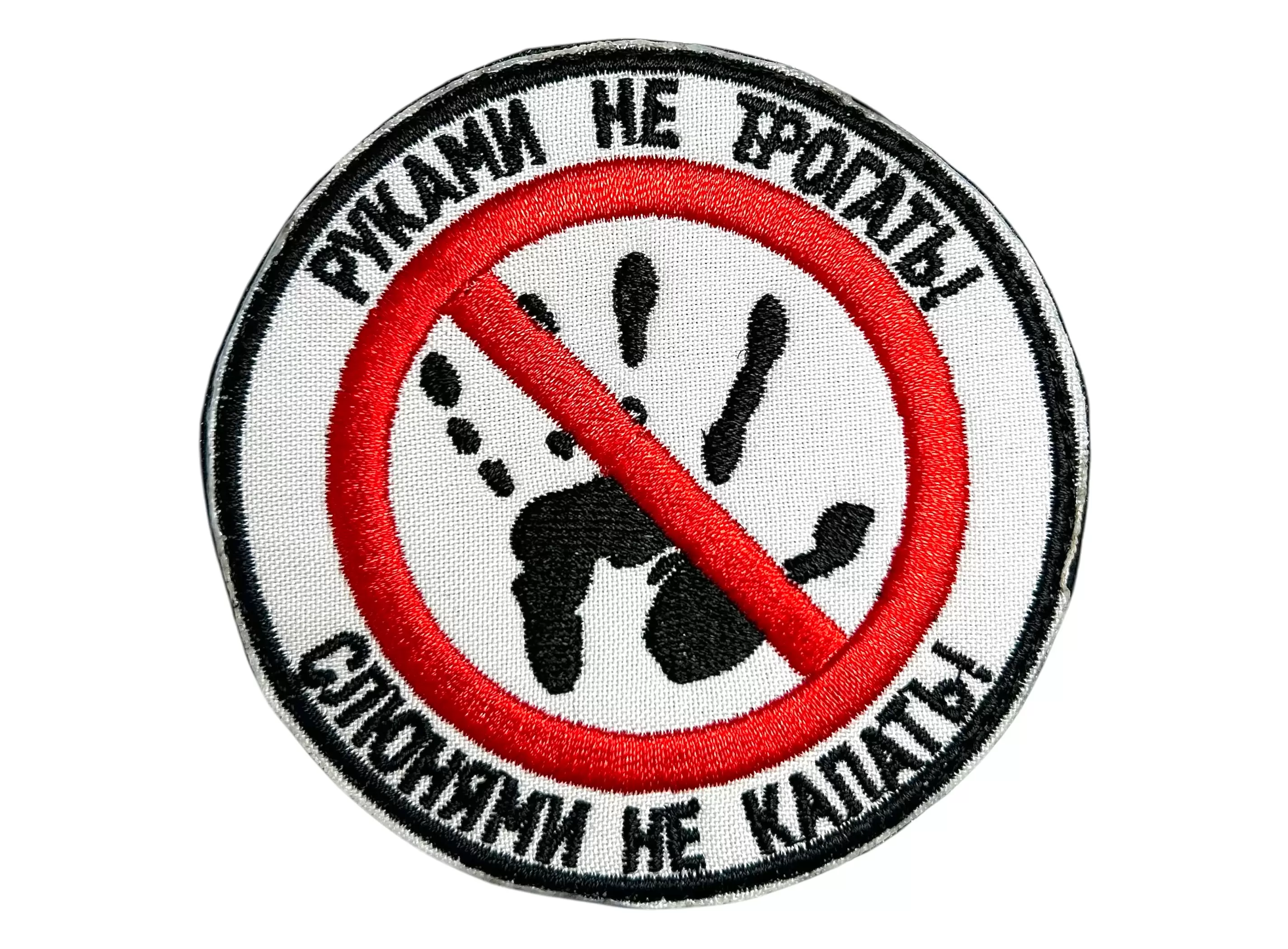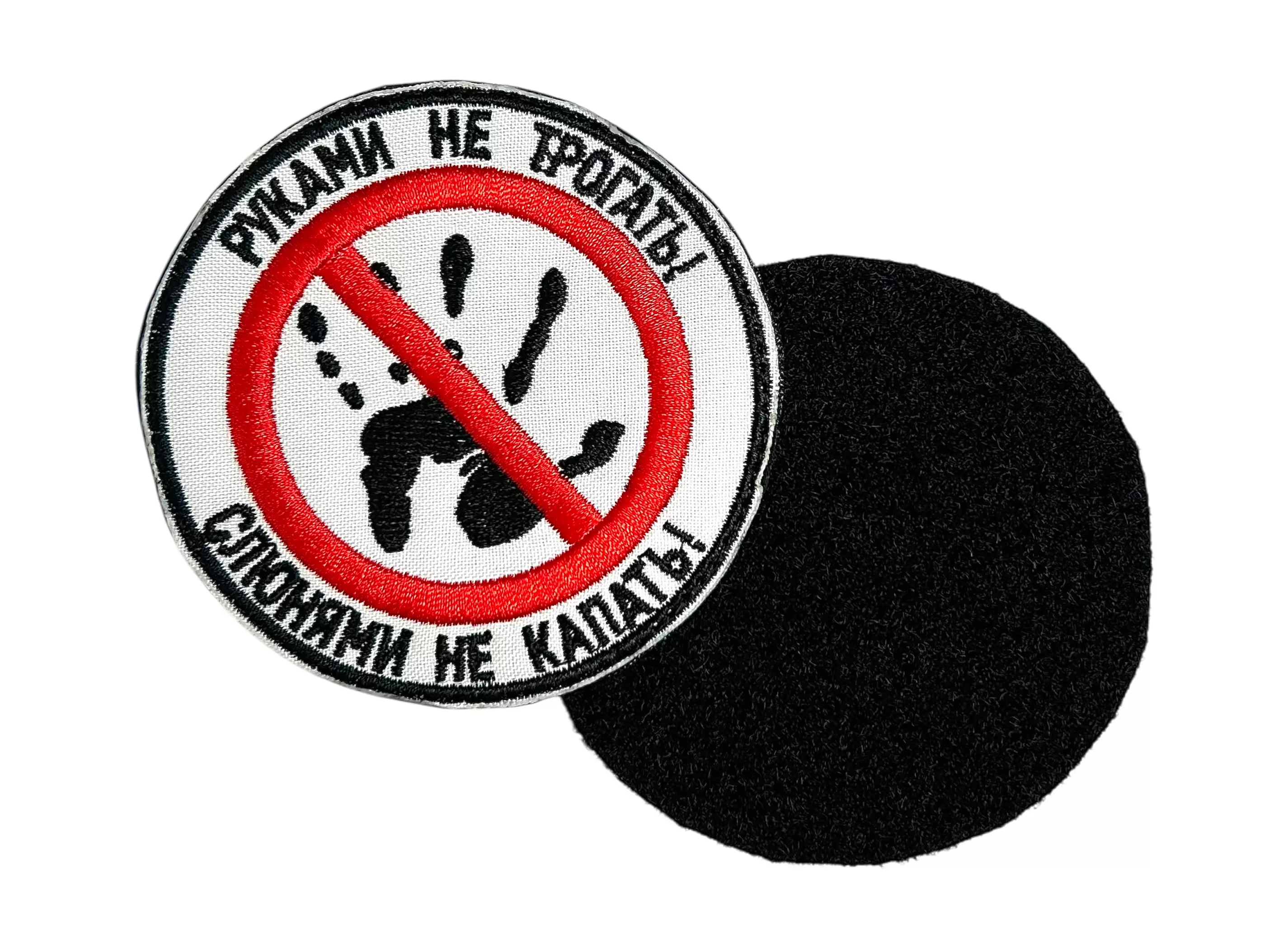 Шеврон Руками не трогать, белый фон, нашивка на липучке, патч