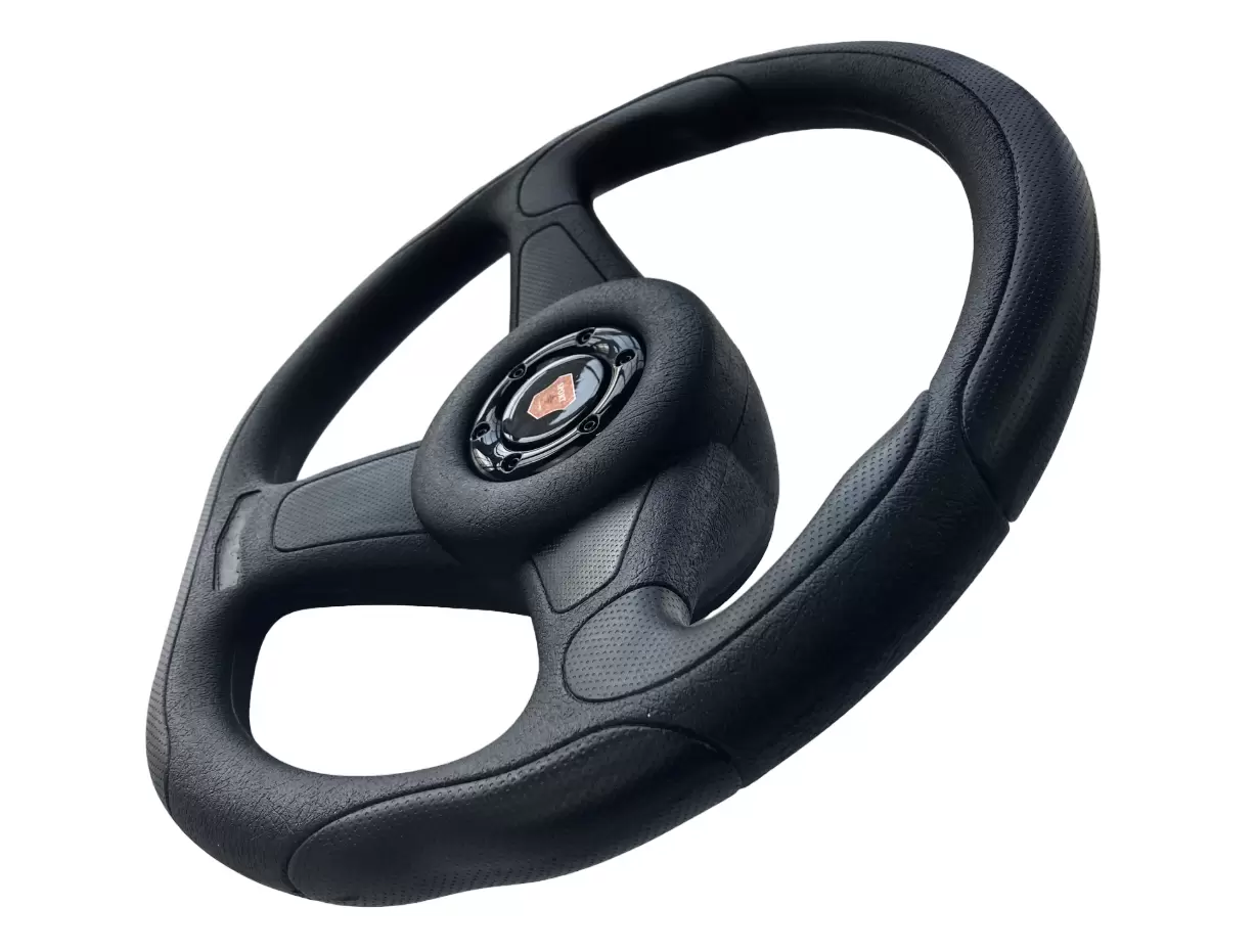 Диаметр руля 400 мм (уменьше в сравнении со штатными 420 мм). Толщина обода уменьшена до 37x34 мм. Анатомическая форма обеспечивает удобный хват и лучшую управляемость.