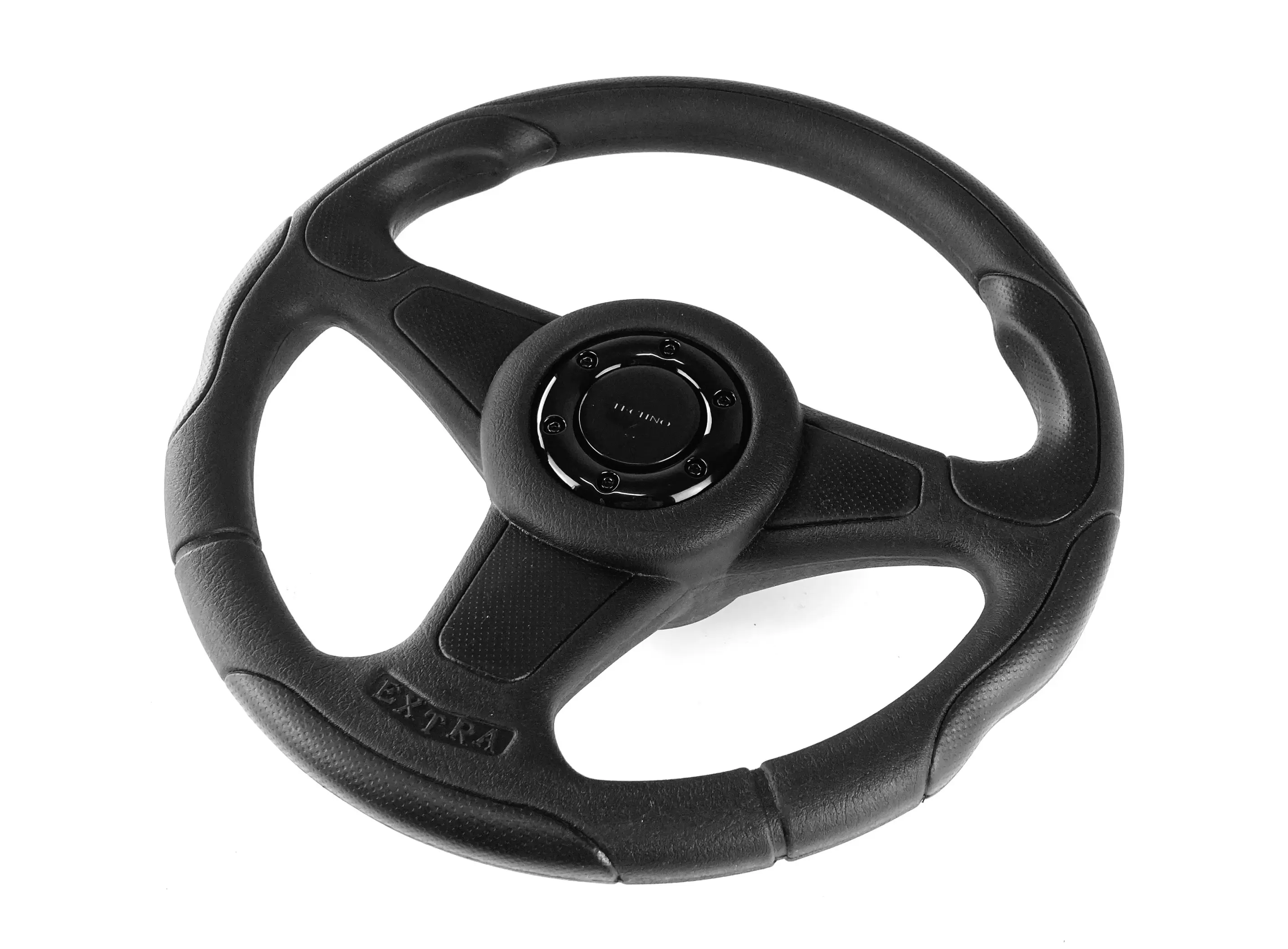 Анатомический, стильный трехспицевый руль черного цвета. Диаметр руля 360 мм (уменьшен в сравнении со штатными 380 мм). Толщина обода увеличена до 34 мм., что улучшает маневренность и комфортное управление транспортным средством.