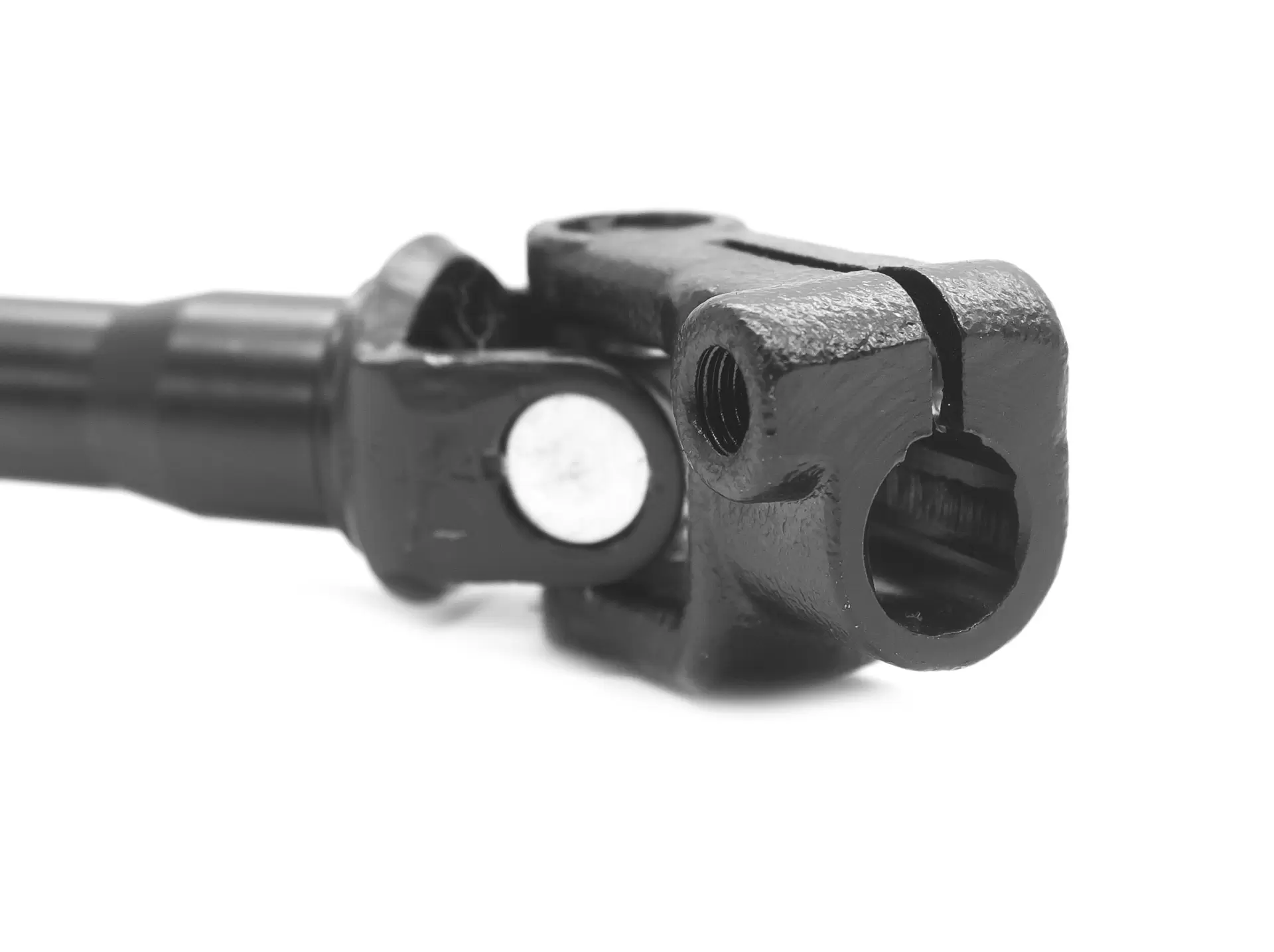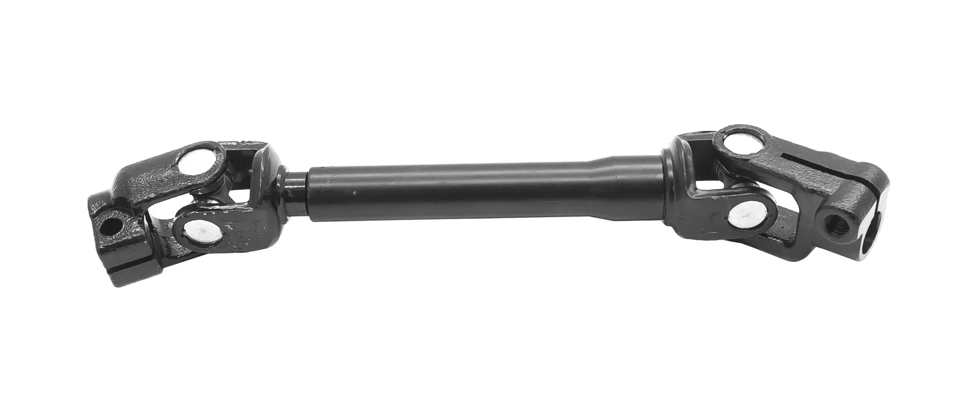 Карданный вал рулевого управления (телескопическая тяга карданного типа) с двумя шарнирами на игольчатых подшипниках - механизм, часть рулевого управления между рулевой колонкой и механизмом ГУР (редуктором). Вилки карданного вала крепятся к валу колонки и валу ведущей шестерни углового редуктора клиньями, которые затянуты гайками со шплинтами.