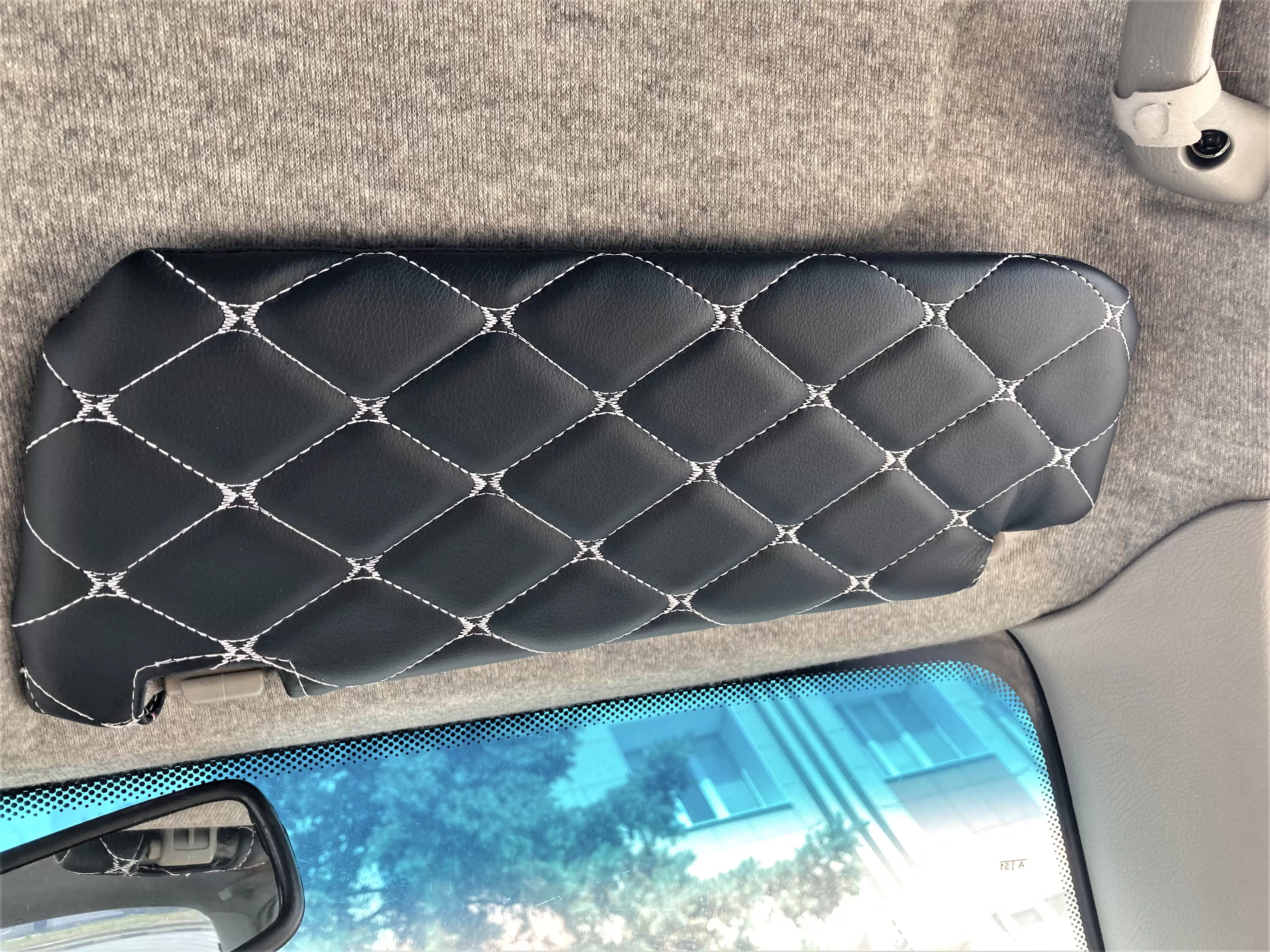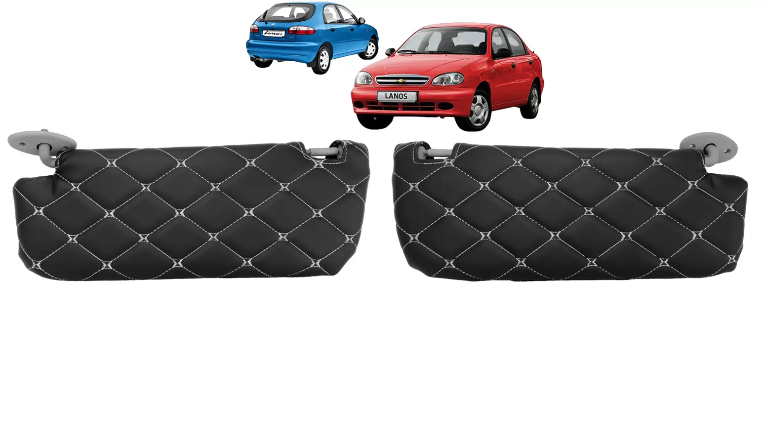Чехлы на козырьки Шевроле Ланос, ЗАЗ Шанс (Lanos, Chance) декоративный черный ромб, белая нить