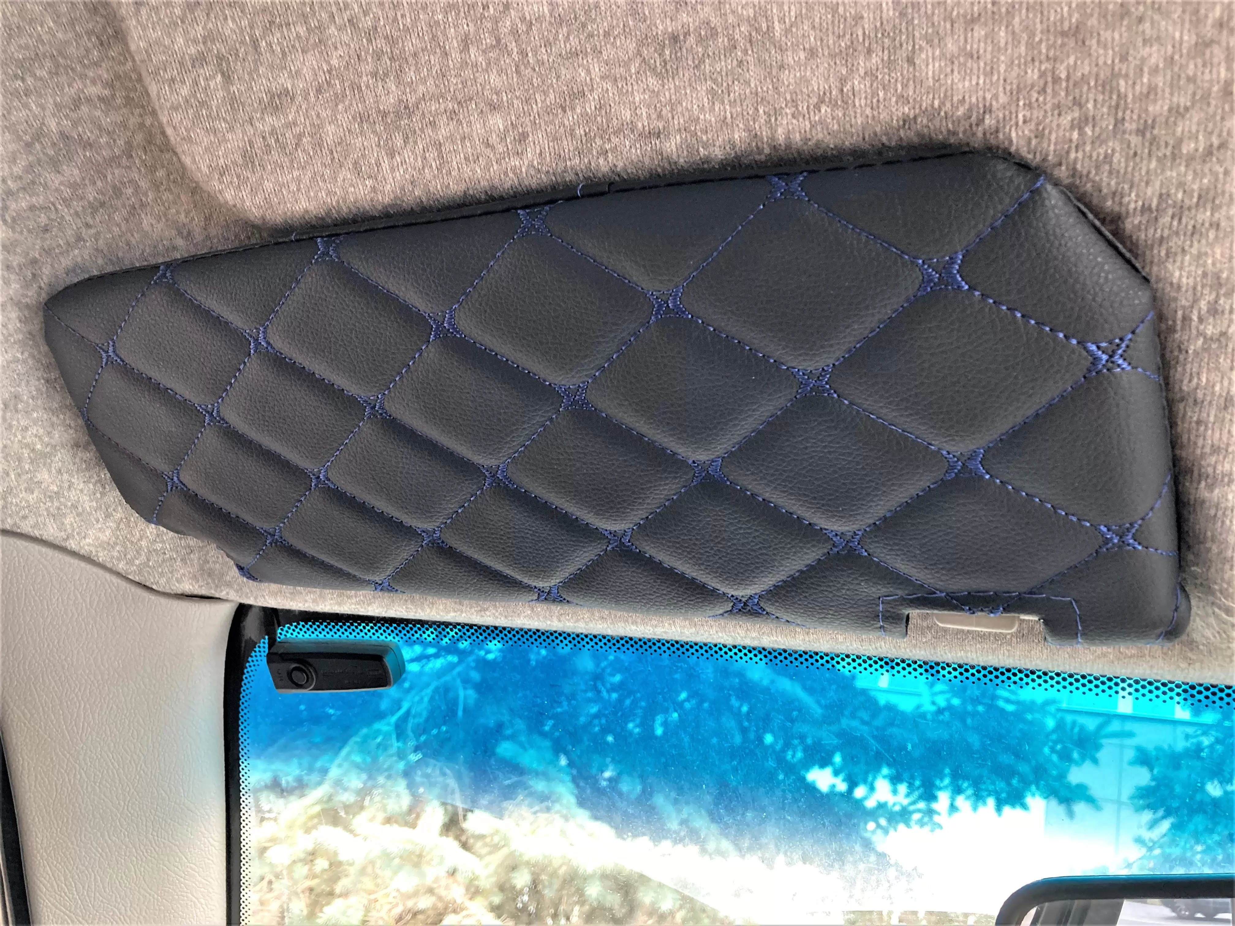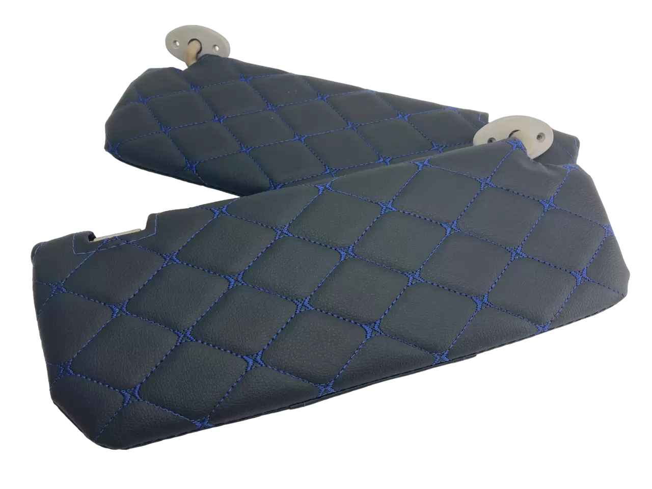 Чехлы на козырьки Шевроле Ланос, ЗАЗ Шанс (Lanos, Chance) декоративный черный ромб, синяя нить