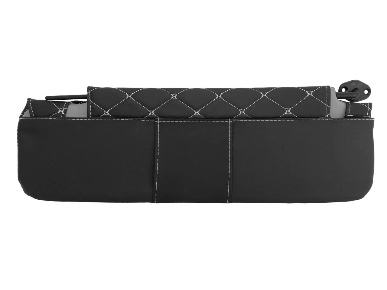 Стильный классический дизайн из декоративных черных ромбов, прошитых белой нитью, придает салону автомобиля эстетичный и элегантный внешний вид.