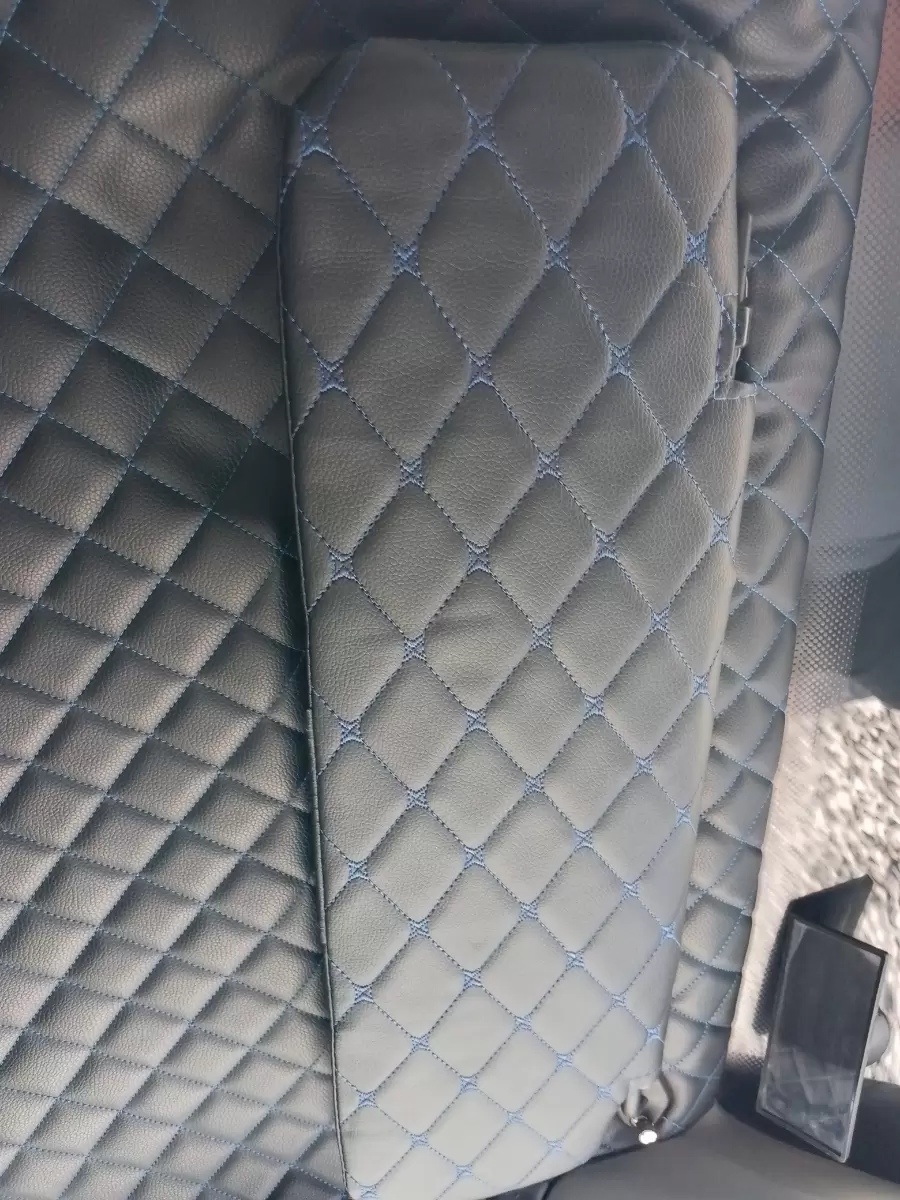 Стильный оригинальный дизайн из декоративных черных ромбов, прошитых синей нитью, придает салону автомобиля эстетичный и элегантный внешний вид.