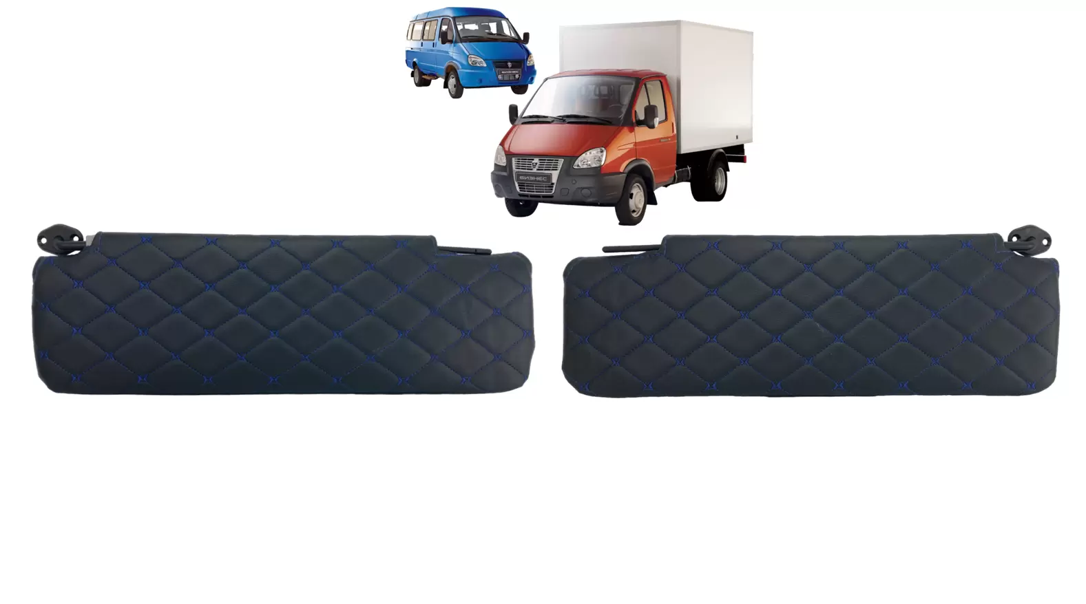 Чехлы на козырьки ГАЗель Бизнес, Соболь (комплект) декоративный черный ромб, синяя нить