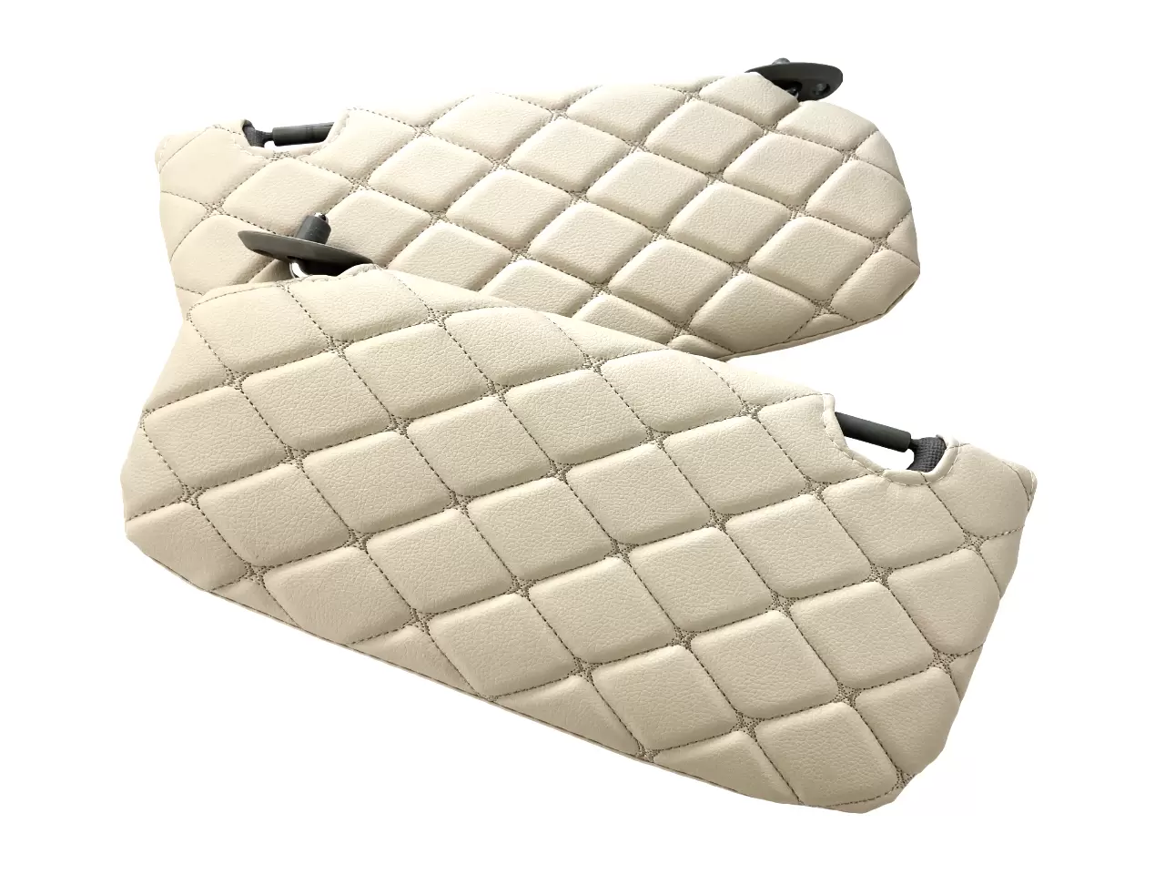 Чехлы выполнены с учётом формы заводских солнцезащитных козырьков и устанавливаются без доработки элементов салона. Подходят для повседневной эксплуатации автомобиля и сохраняют опрятный внешний вид салона при длительном использовании.
