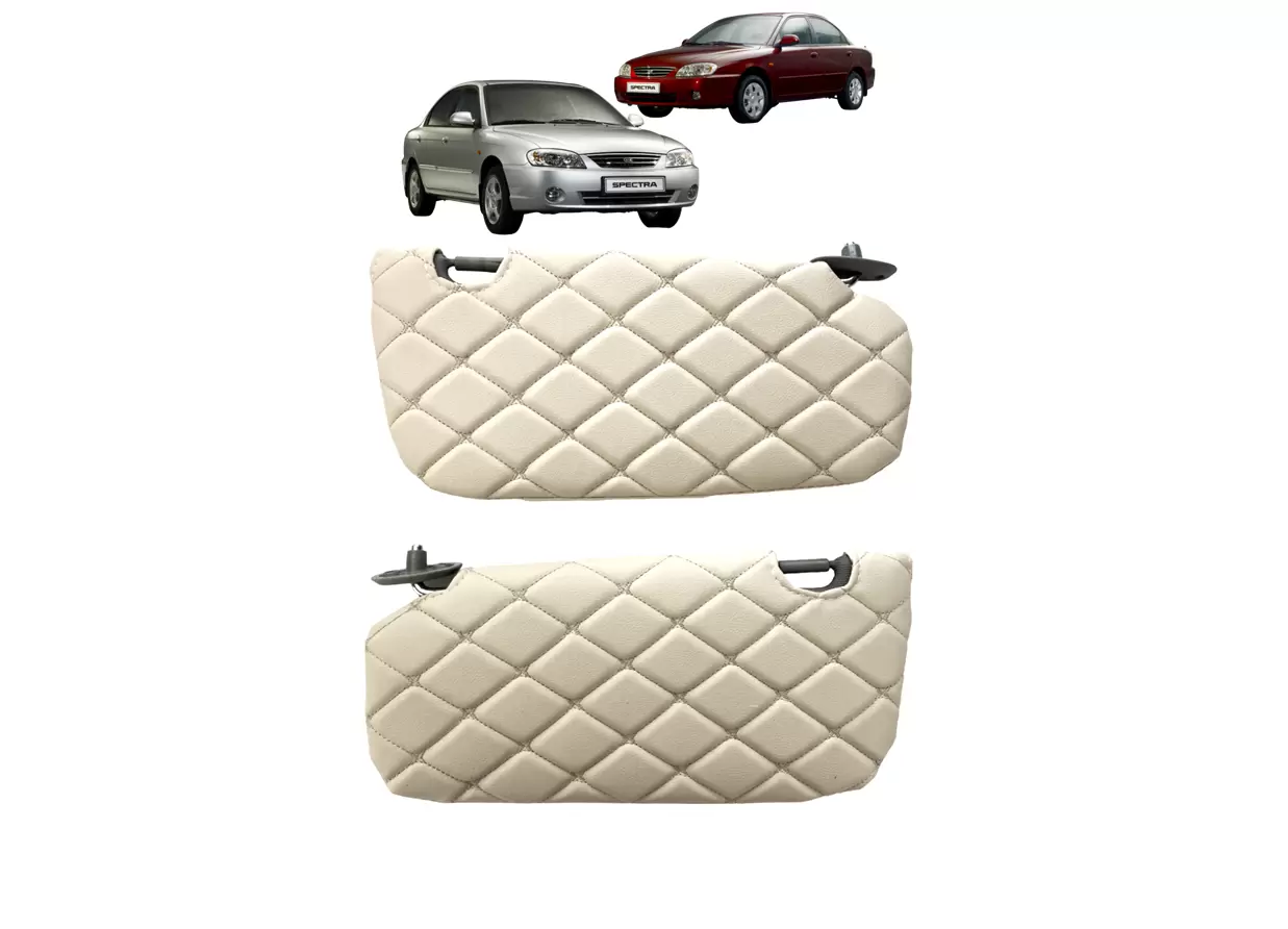 Чехлы на солнцезащитные козырьки предназначены для автомобилей KIA Spectra первого рестайлинга и второго поколения 2004–2011 годов выпуска. Изделие используется для защиты штатных козырьков от загрязнений, истирания и выгорания, а также для аккуратного обновления интерьера салона.