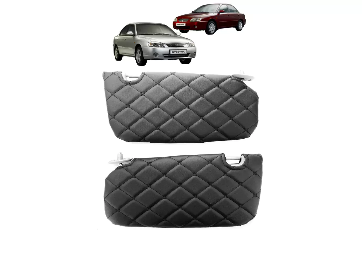 Чехлы на солнцезащитные козырьки предназначены для автомобилей KIA Spectra первого рестайлинга и второго поколения 2004–2011 годов выпуска. Изделие используется для защиты штатных козырьков от загрязнений, истирания и выгорания, а также для аккуратного обновления интерьера салона.