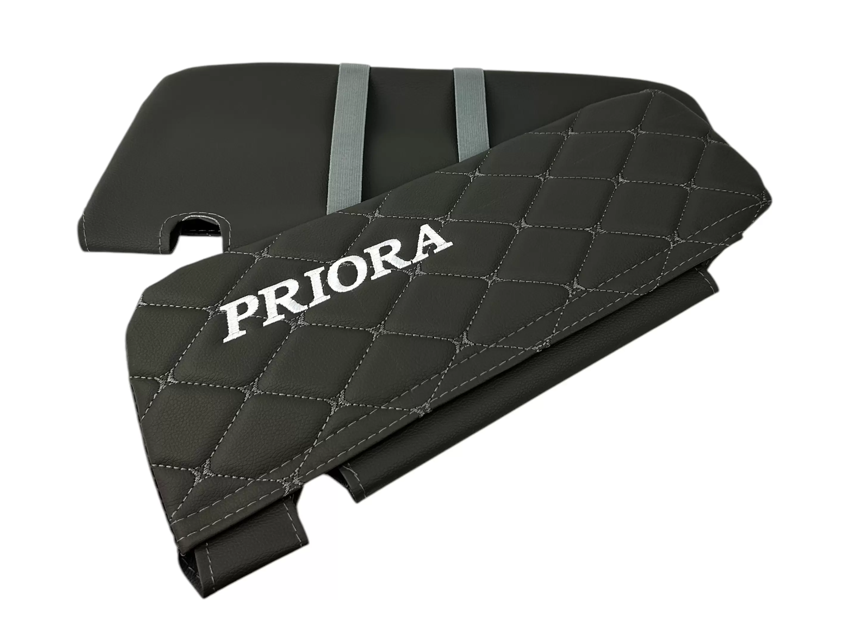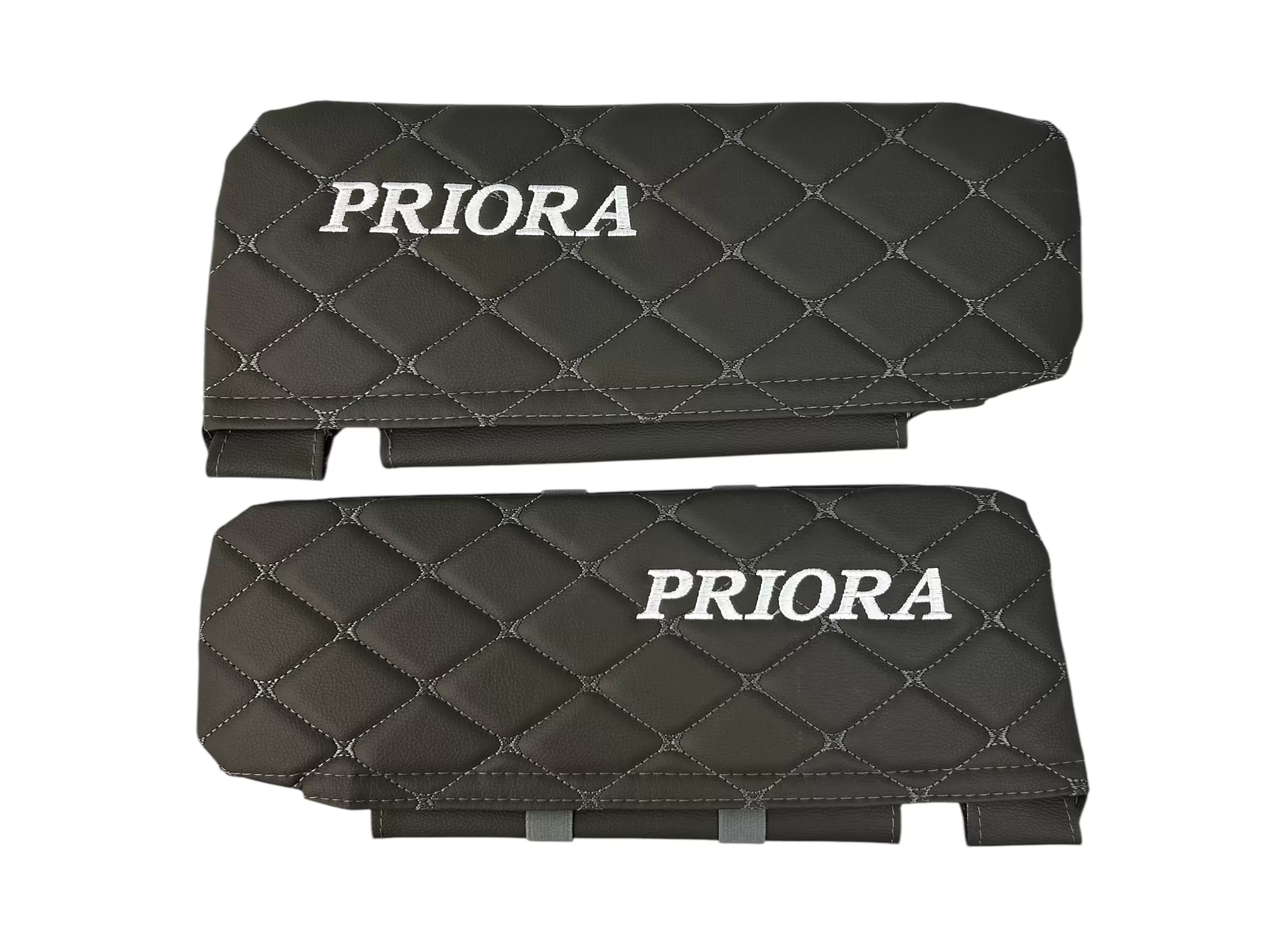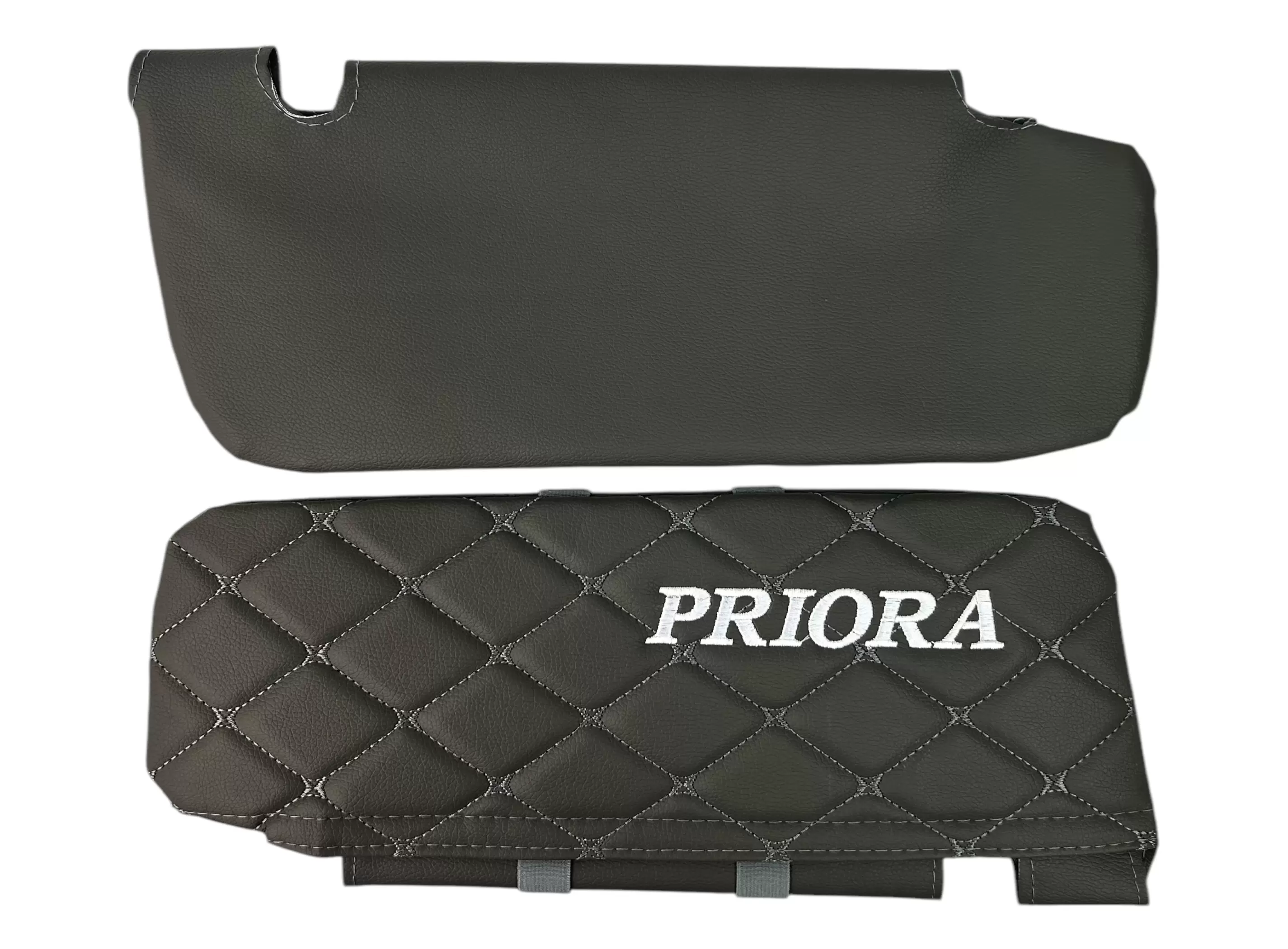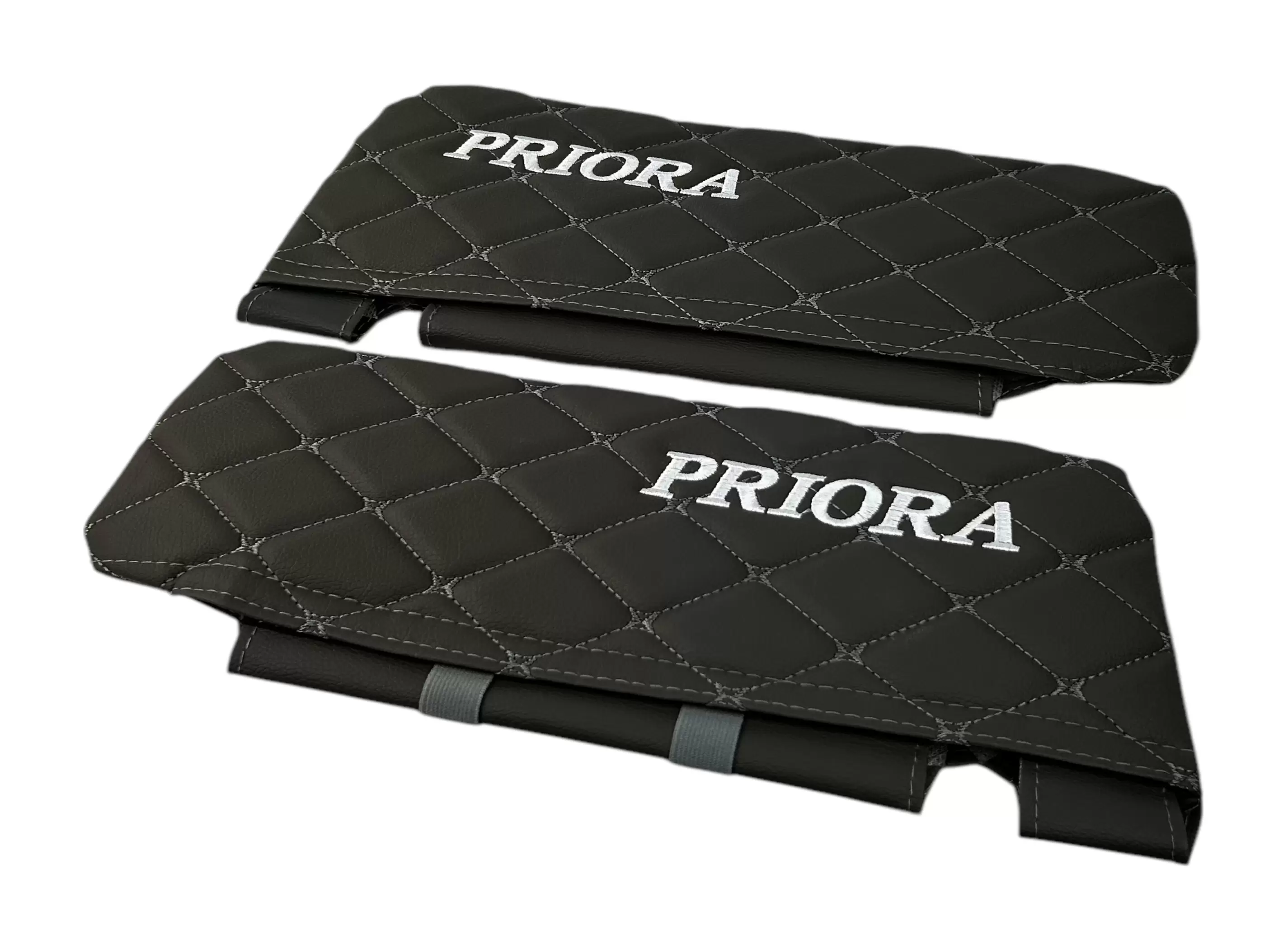 Чехлы на козырьки LADA Priora (Приора) с надписью, серый ромб, комплект