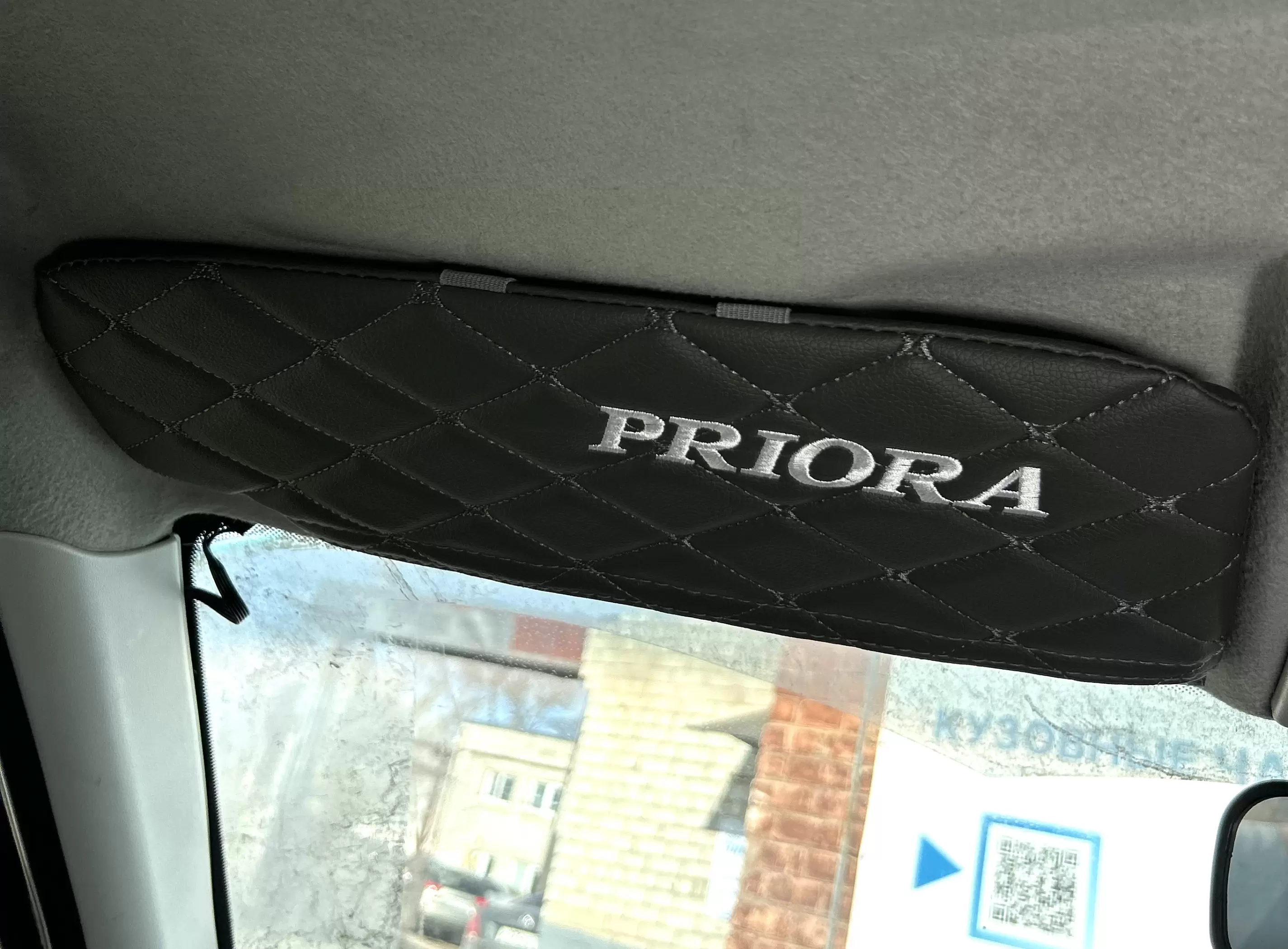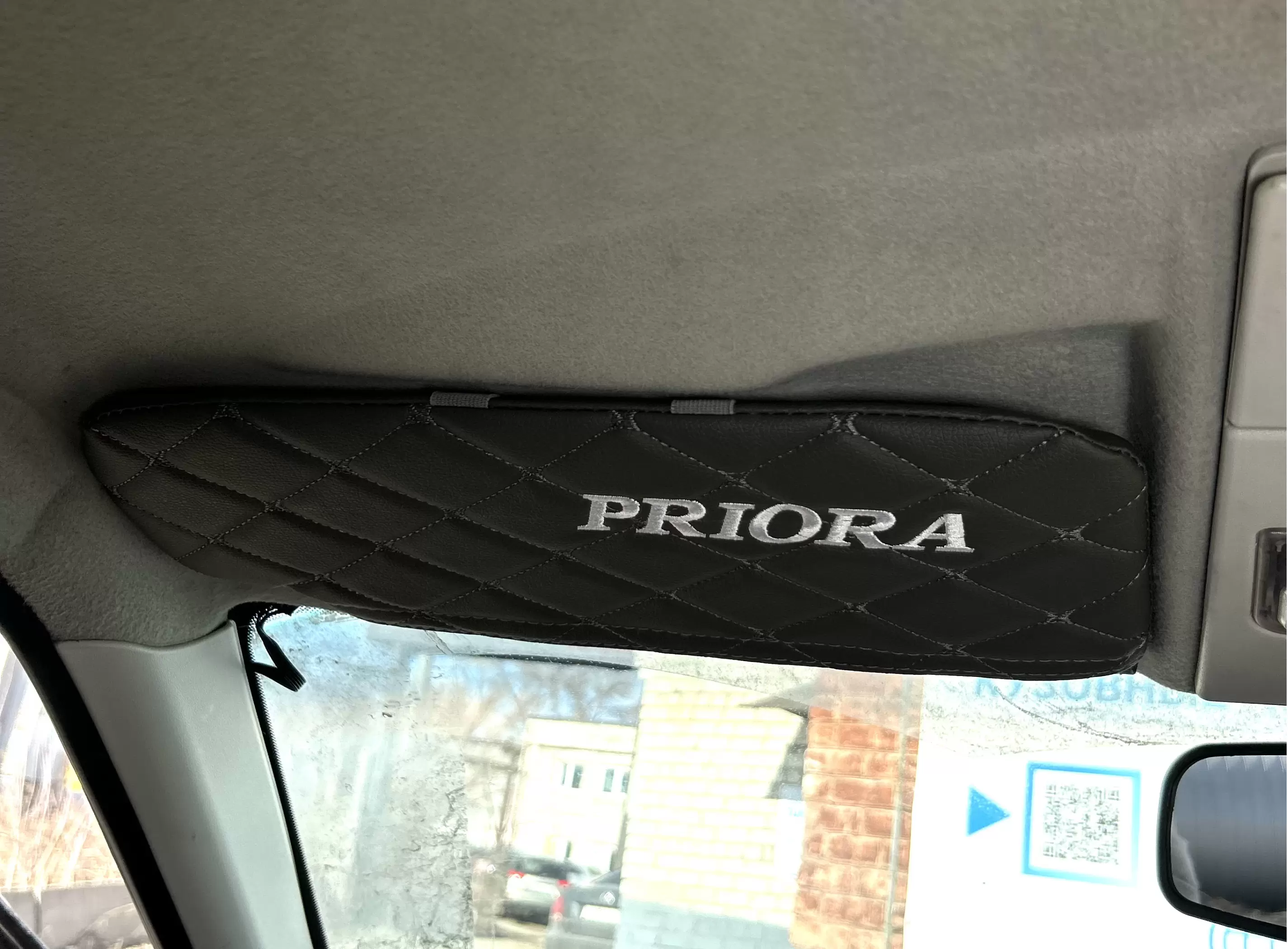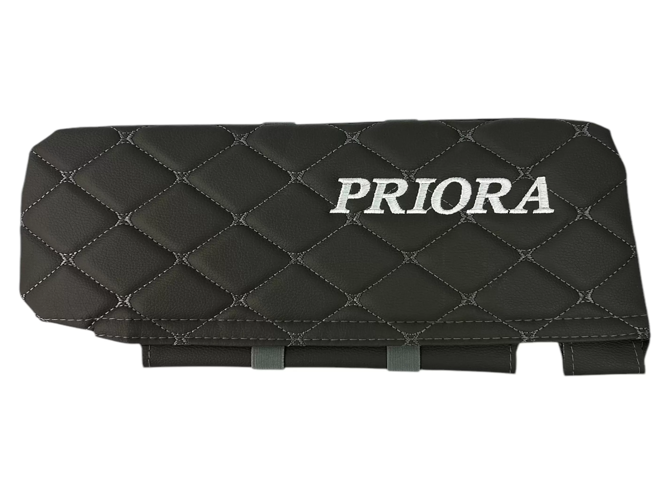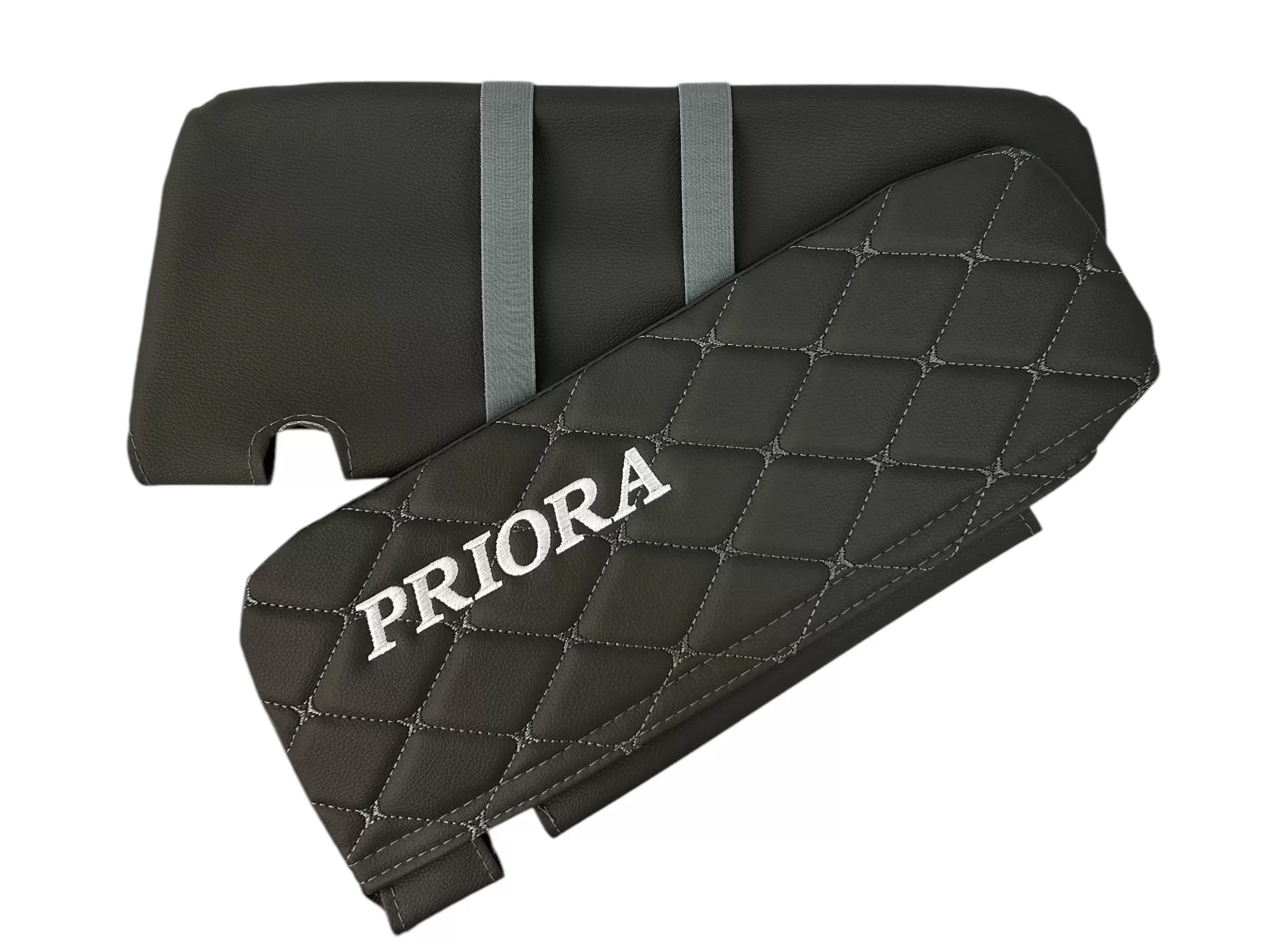 Чехлы на козырьки LADA Priora (Приора) с надписью, серый ромб, комплект