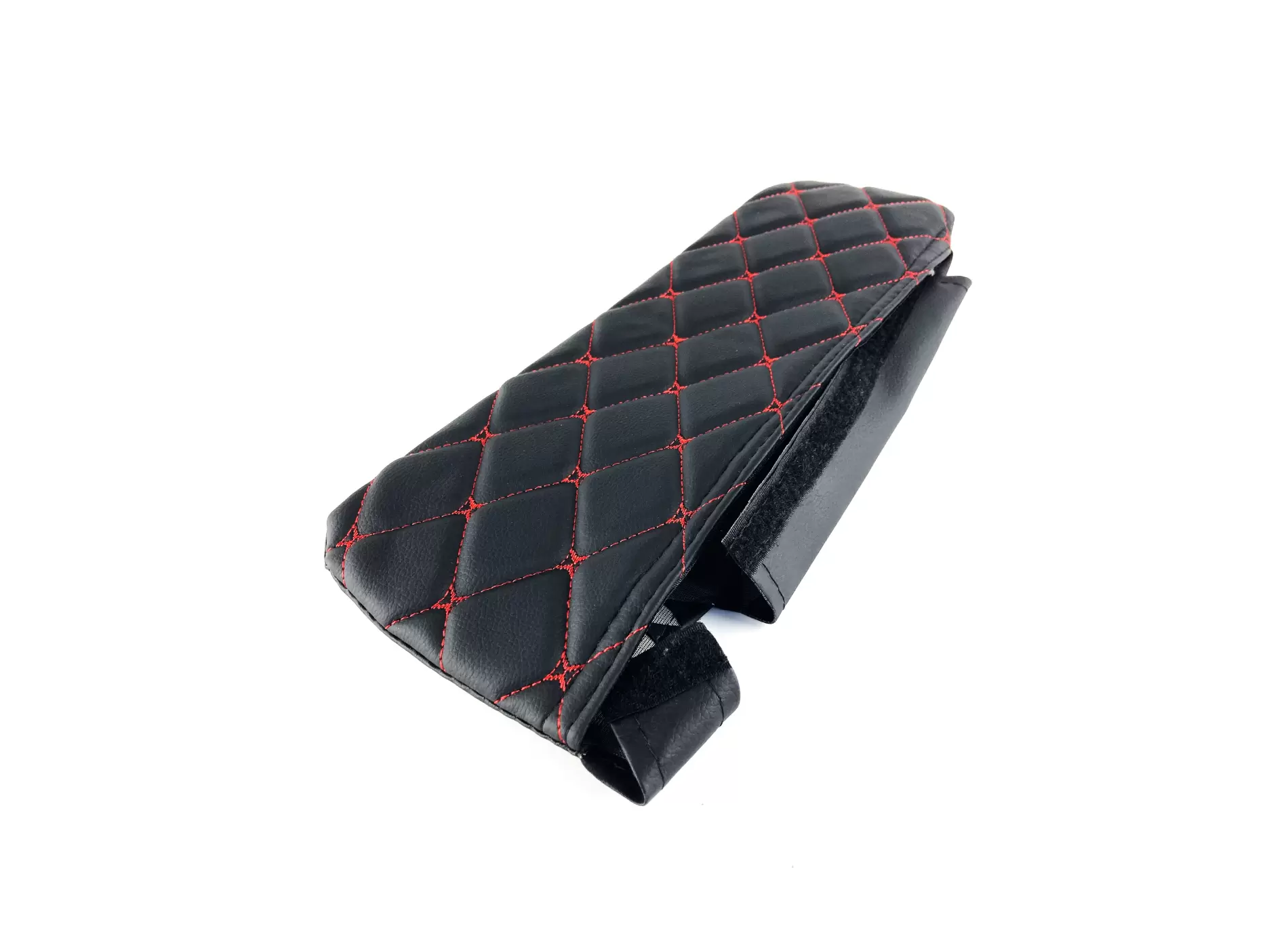 Оригинальный дизайн из декоративных черных ромбов, прошитых яркой красной нитью, придает автомобилю стильный и брутальный внешний вид.