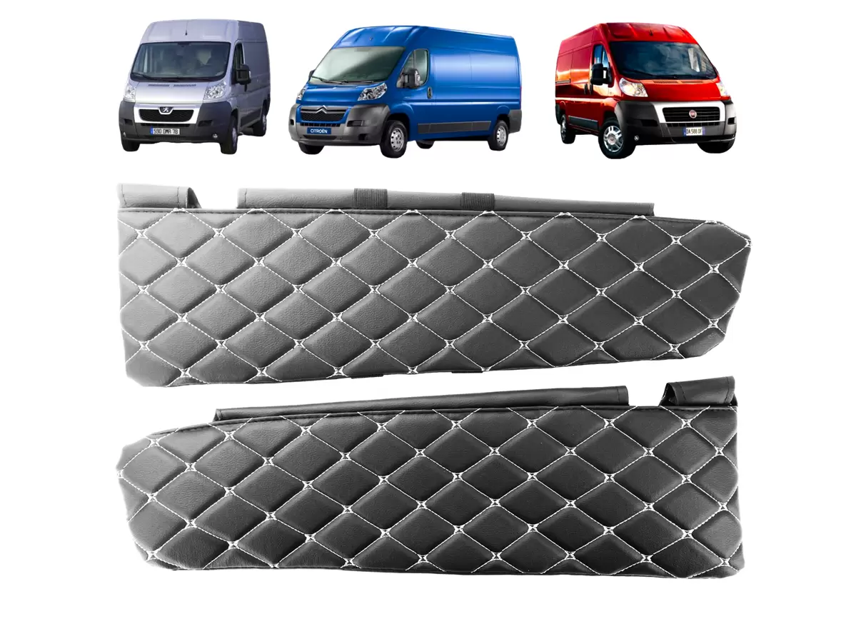 Чехлы на козырьки Peugeot Boxer 2, Citroen Jumper 2, Fiat Ducato 3 черный ромб белая строчка