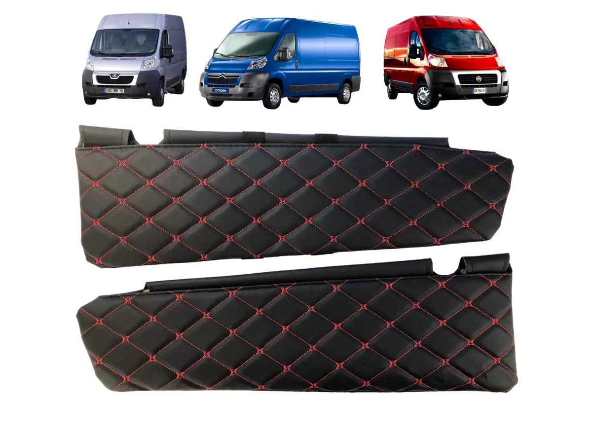 Чехлы на козырьки Peugeot Boxer 2, Citroen Jumper 2, Fiat Ducato 3 черный ромб красная строчка