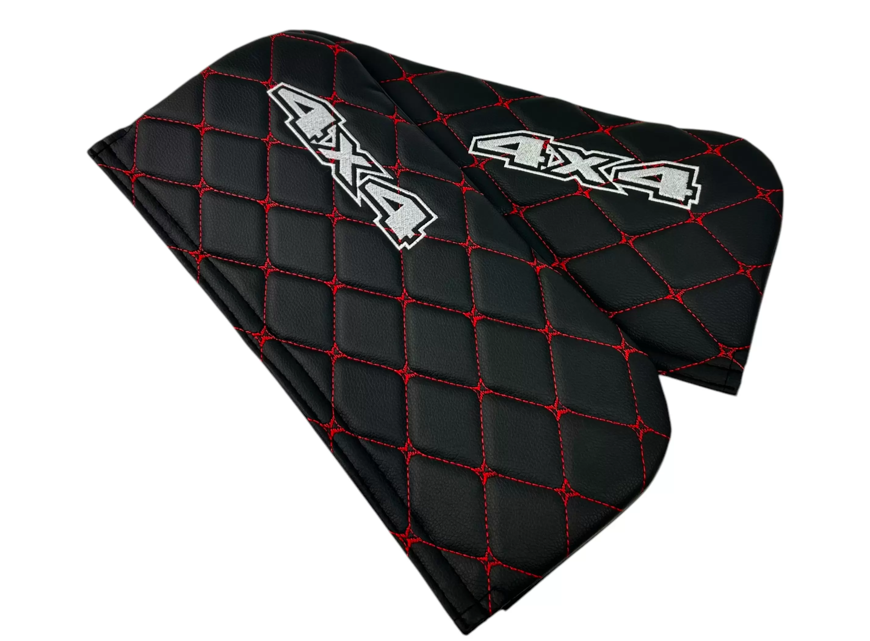Чехлы на козырьки УАЗ 469 Хантер, 452 Буханка с лого 4х4, черный ромб красная нить