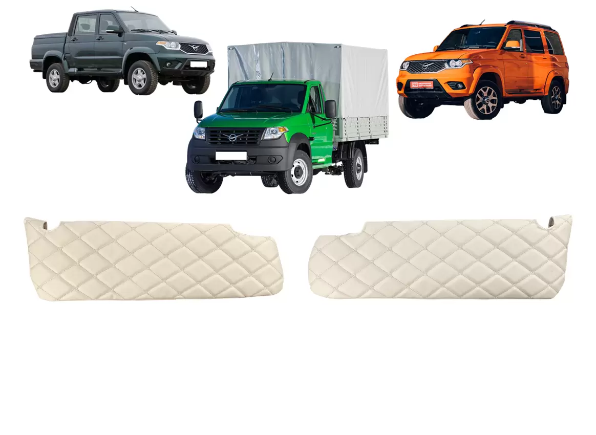 Чехлы на козырьки УАЗ Патриот, Пикап, Профи (комплект) бежевый ромб
